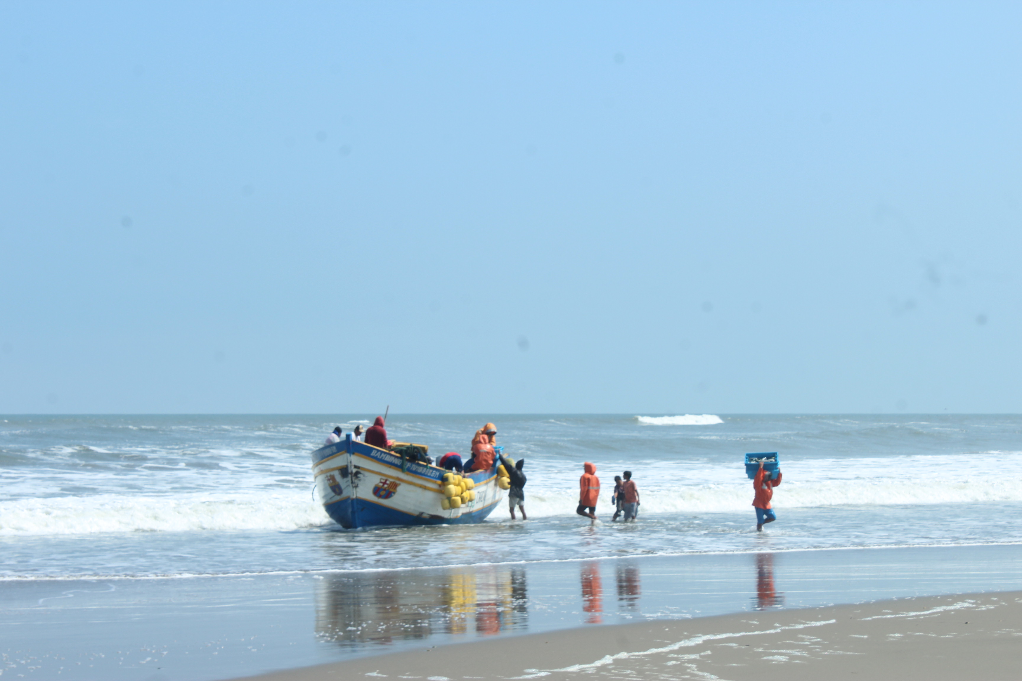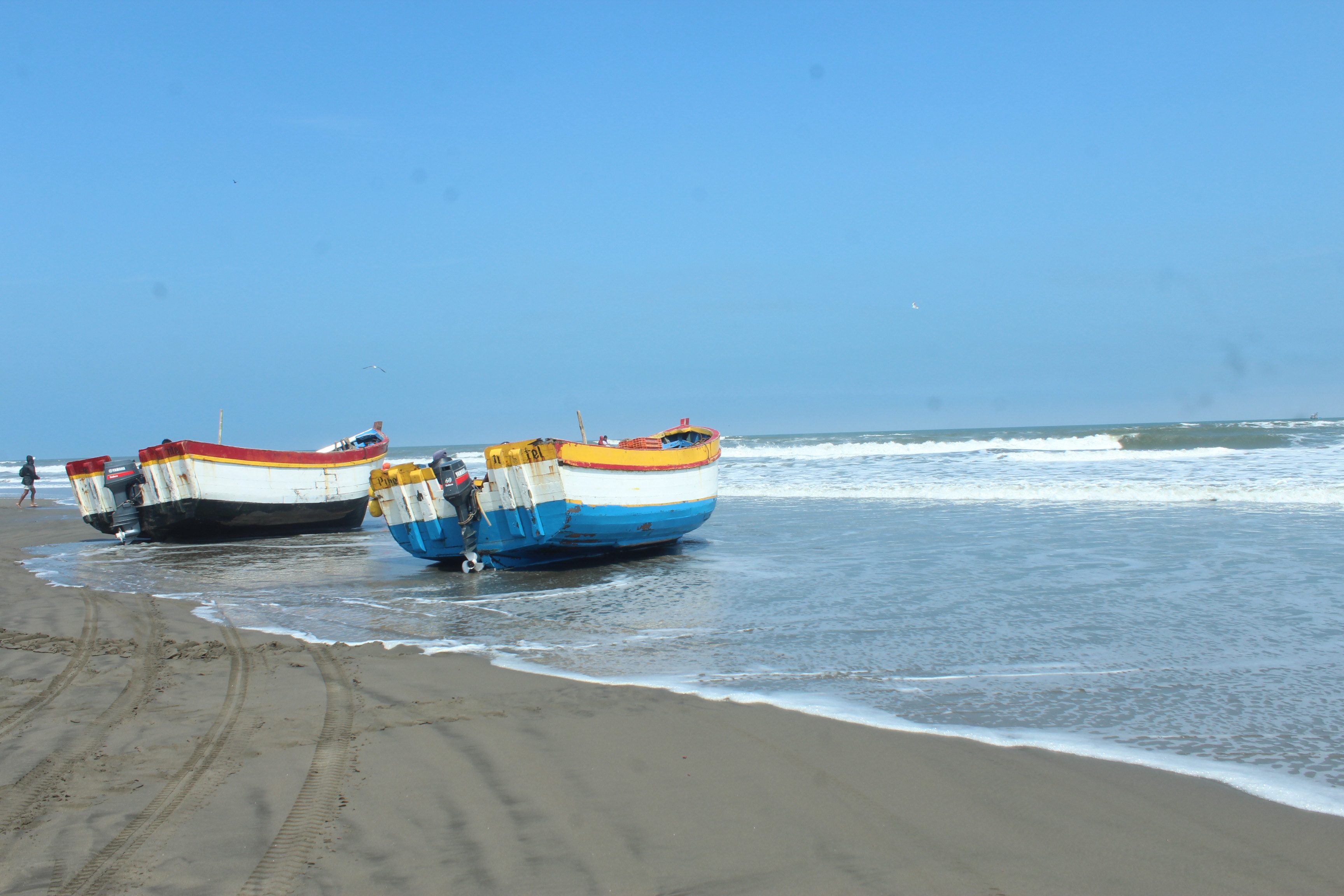 Parte del paisaje de esta playa, son las embarcaciones pesqueras que están varadas en la orilla, muy cerca al límite superior de la pleamar, las cuales son elaborados en los astilleros ubicados en el mismo distrito de Santa Rosa.