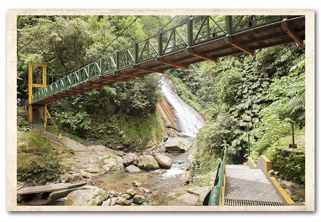 Está circundada por comunidades de vegetación de "bosques de neblina" predominando gran variedad de árboles medianos y pequeños muy delgados y ramificados, arbustos leñosos y herbáceos representados por helechos, musgos, gramíneas y flores silvestres; también por diversas especies de insectos, mariposas aves y pequeños reptiles. Para llegar al Velo de la Novia hay que descender varios metros por escalones de tierra y piedra hasta llegar al punto donde muere la caída de agua.