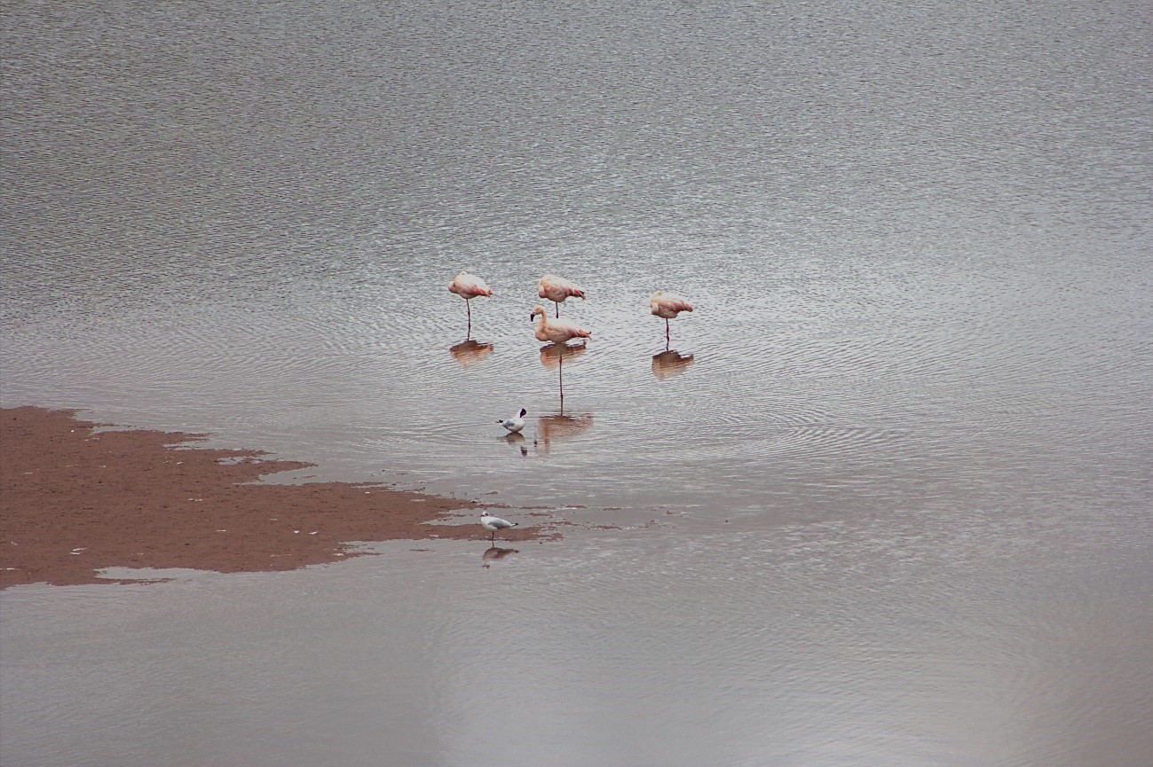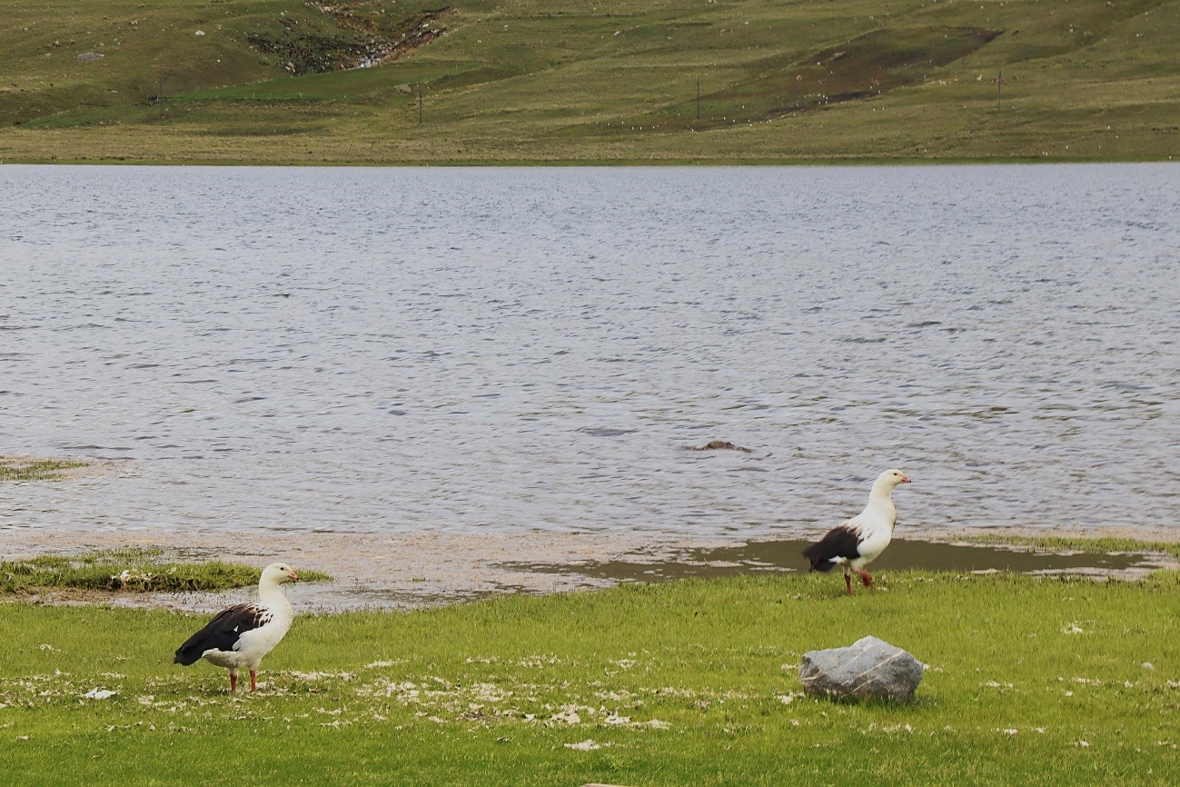 Perdiz cordillerana, pato de puna, flamenco chileno, zambullidor plateado, estrella andina, gallareta, gaviota, huallatas, bandurrias, huashuas, águilas y otros.