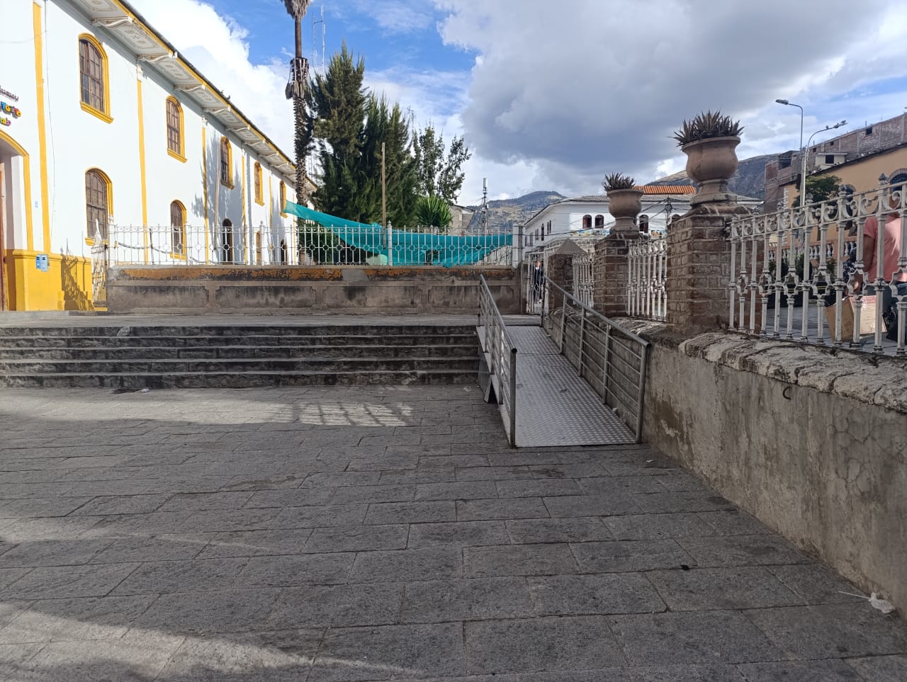 Rampa metálica y barandas al lado de las graderias para el fácil acceso al templo