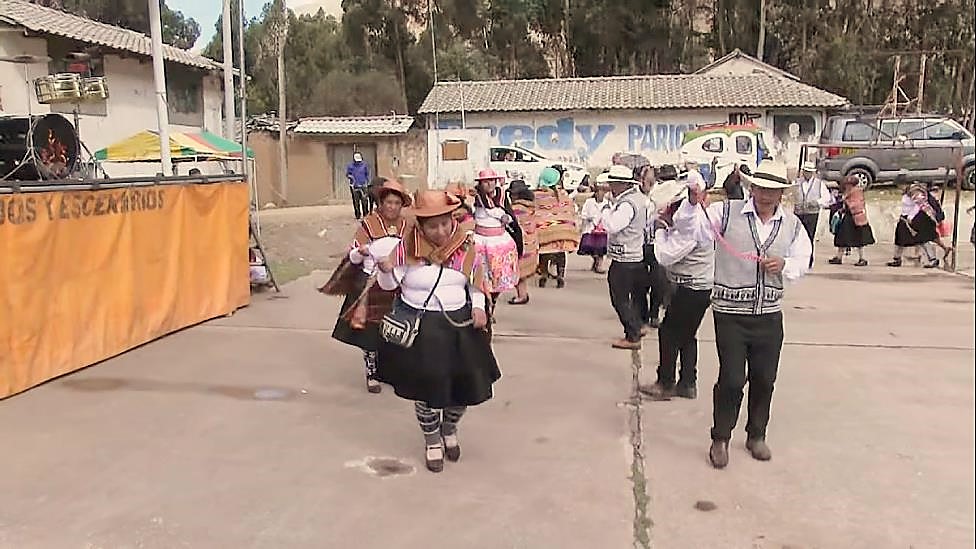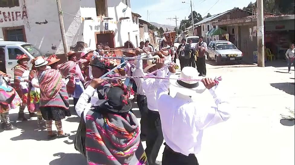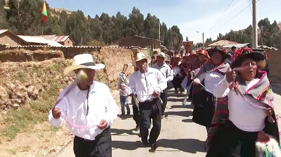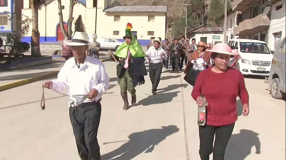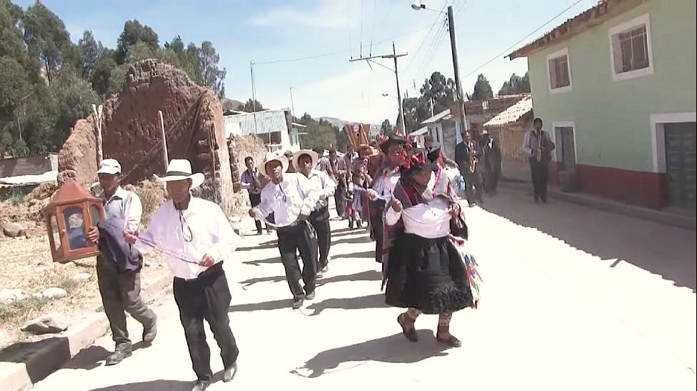 Vestimenta de mujer: Pullo o manta multicolor; sombrero, adornado con flor de cantuta; ojotas de pellejo de llama, falda o fustán de color rojo, negro, verde o anaranjado; blusa blanca, rosado o verde, wallqui (en quechua huanca significa bolsa donde se lleva la coca) y una honda. Vestimenta del varón: Chullo; camisa blanca, poncho negro, pantalón negro, medias de lana de ovino, ojotas, honda o huaraca, y wallqui.