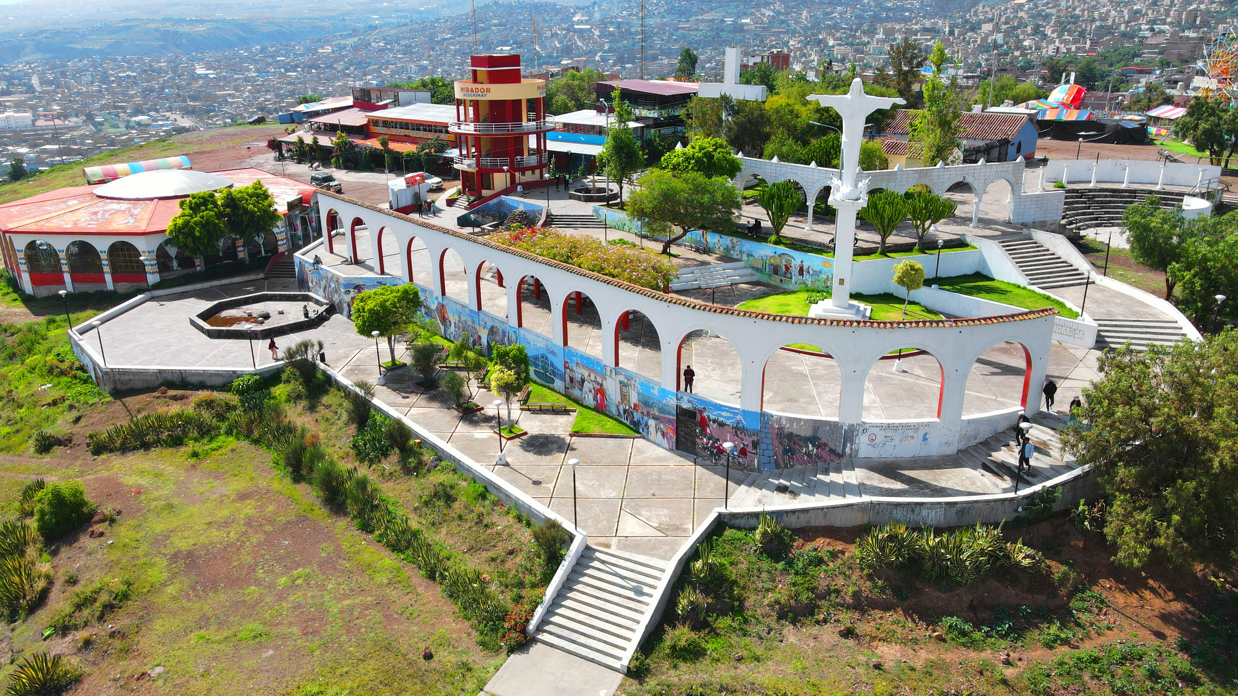 En la segunda planta es donde se ubica la cúpula que es usado como restaurante turístico con vista a la ciudad y una glorieta en su exterior con descansos rodeada de 13 arquerías blancas con pinturas típicas de la artesanía ayacuchana, murales con escenas cotidianas y religiosas de la región, techadas con tejas de arcilla roja, un lugar ideal para la toma de fotografías, además se encuentra el Cristo Blanco con sus manos extendidas hacia la ciudad y la torre de 3 pisos que brinda una vista panorámica impresionante, a su vez se tiene una pileta hecha con piedras naturales en forma de cascada.