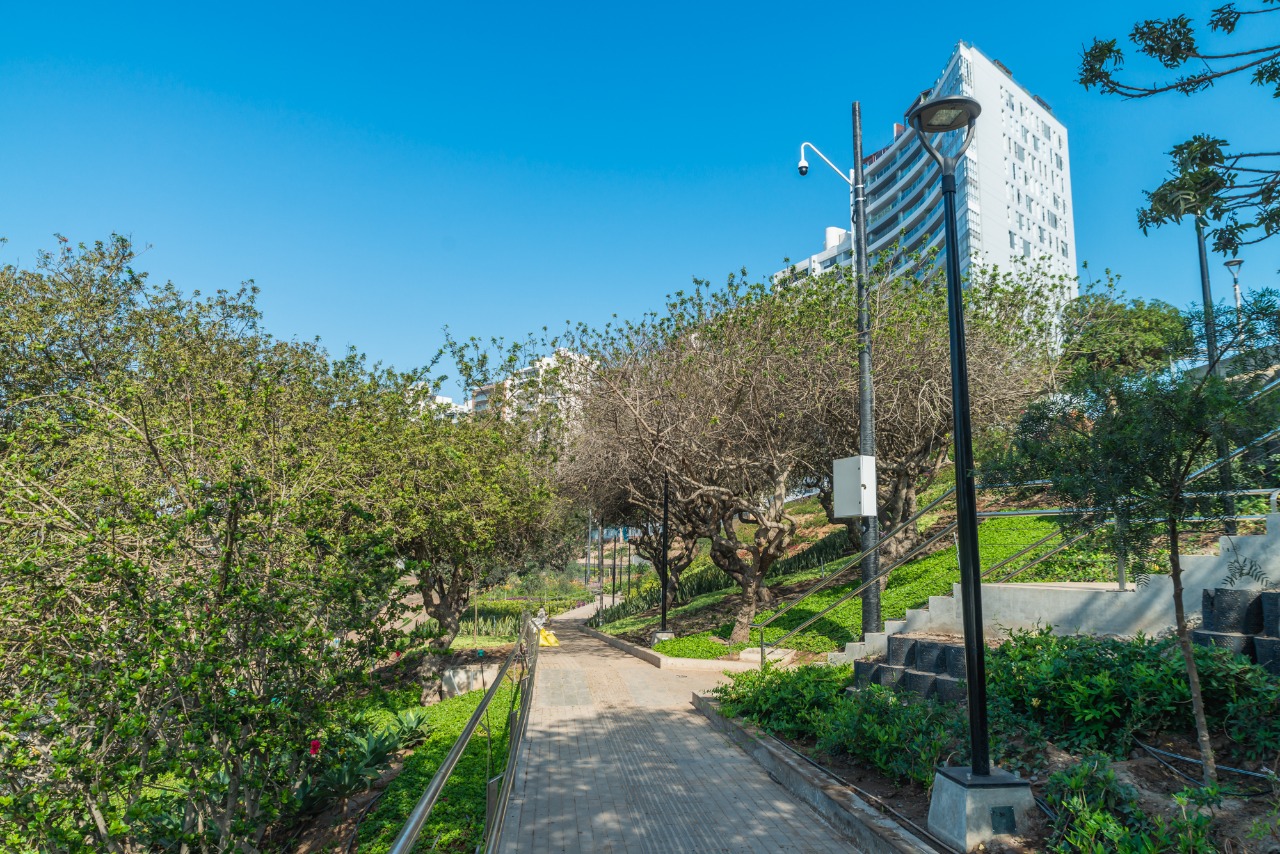 Además, el parque se ha convertido en un verdadero jardín de biodiversidad costera, albergando más de 160 mil especies xerófilas, ideales para el clima seco limeño por su bajo consumo de agua, complementadas por 300 árboles y 80 palmeras. Todo esto se mantiene gracias a un sistema de riego tecnificado que asegura el cuidado sostenible de la flora.