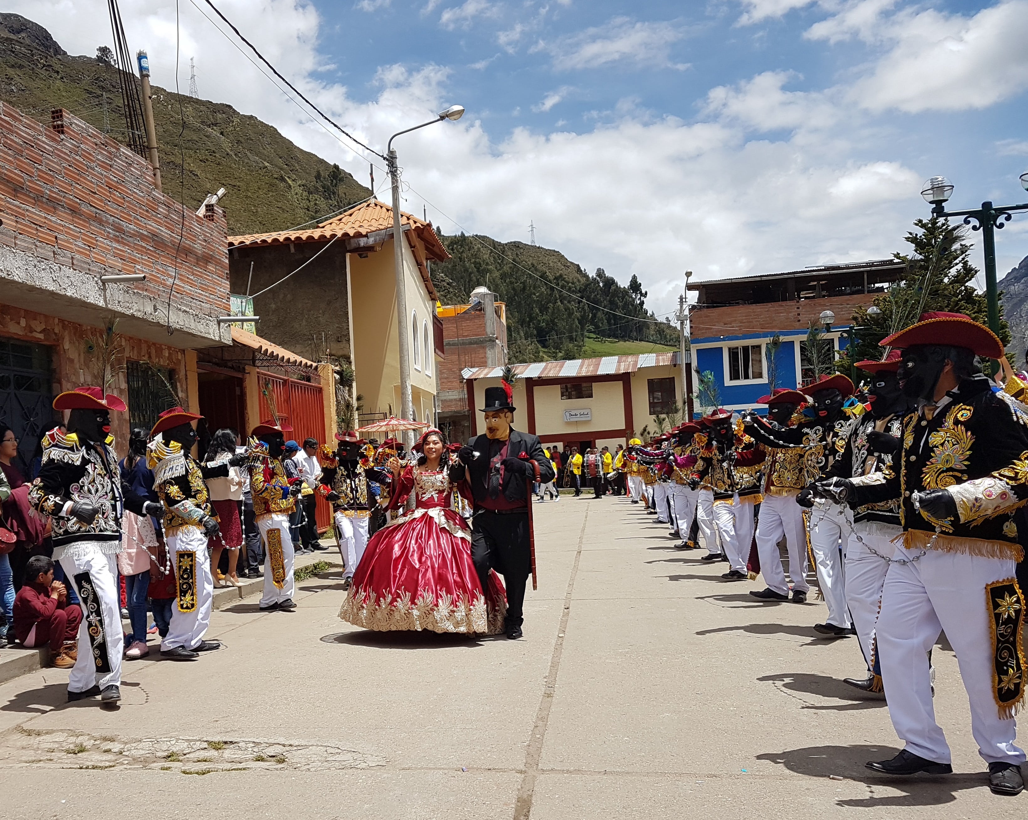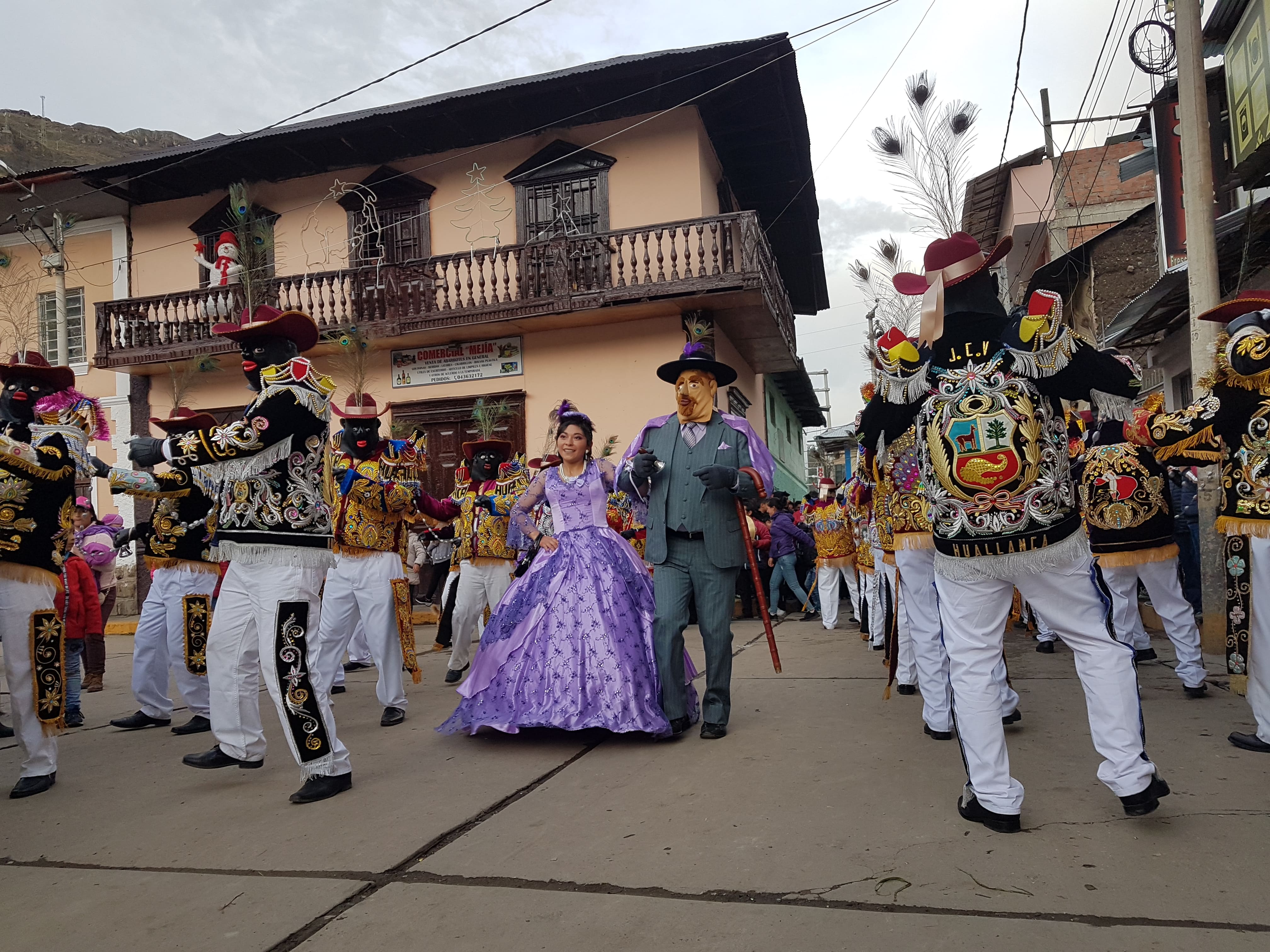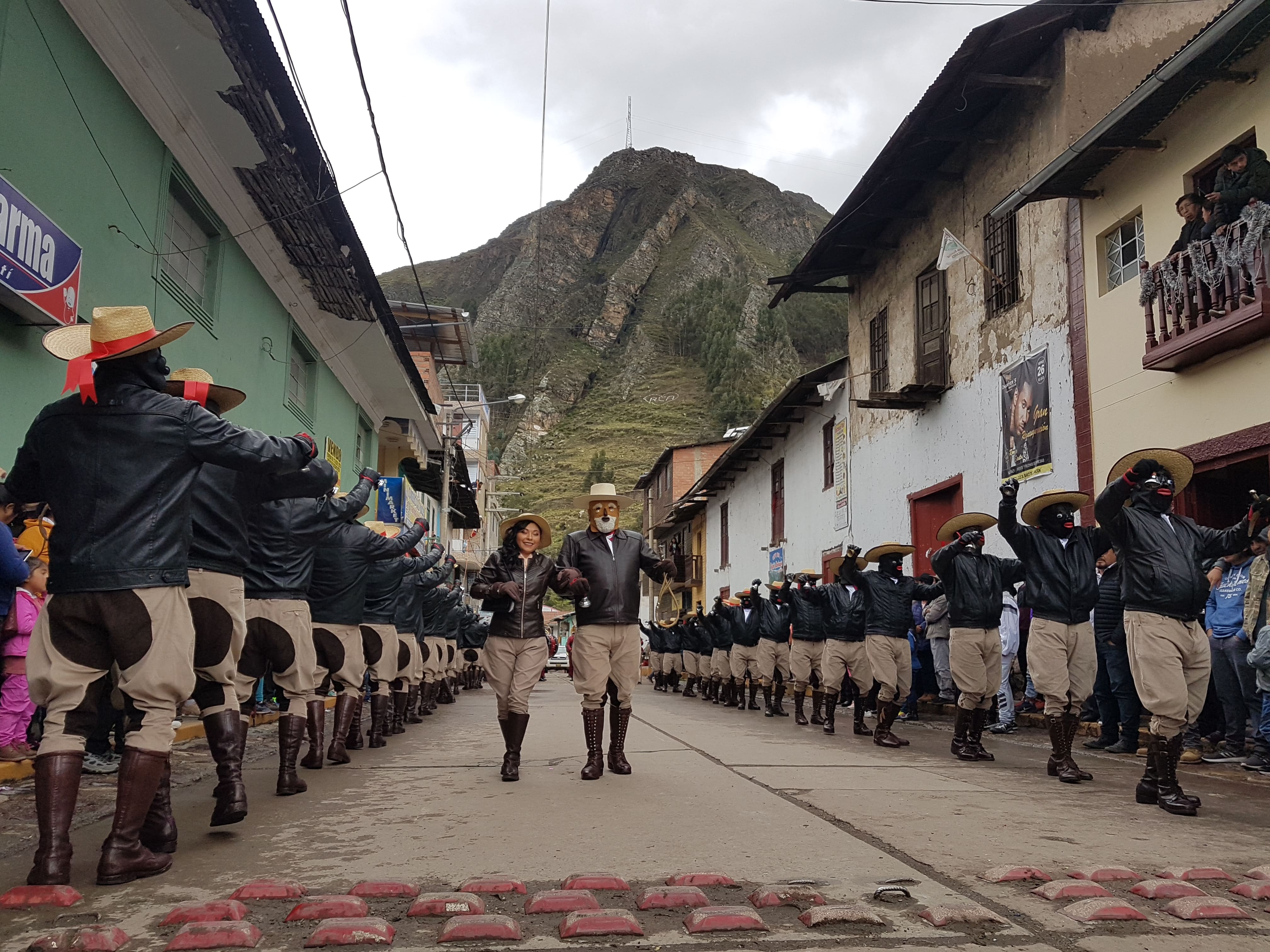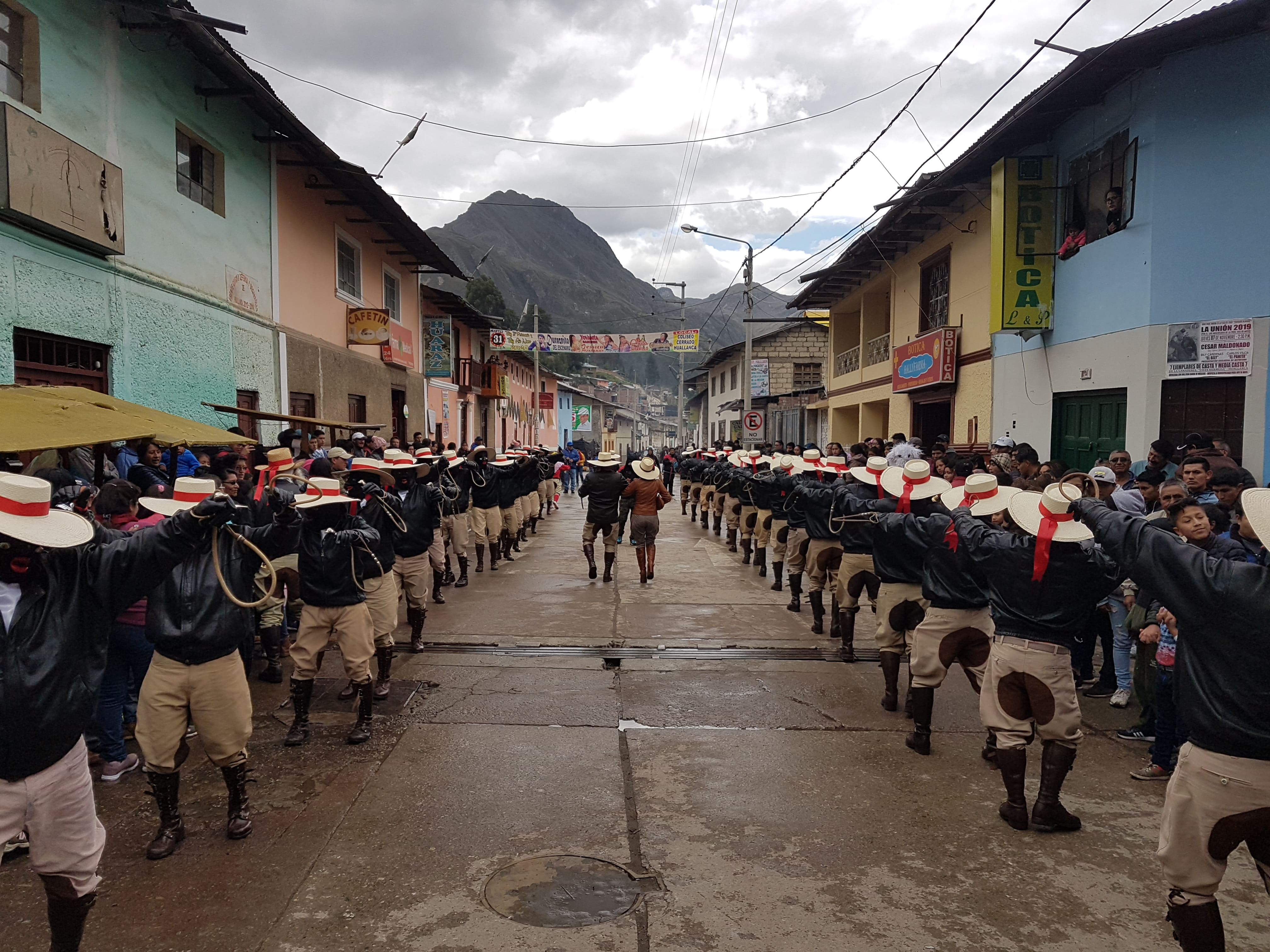 Primer Día: Es el inicio de la expresión cultural más significativa del distrito donde los danzantes recorren las calles principales de la ciudad; la vestimenta es sencilla que consiste en: botas de montar, pantalón de montar, casaca de cuero negro, camisa roja, pañoleta blanca, máscara de cuero color negro sin adornos, sombrero de junco o sombrero de paja color blanco, guantes de cuero negro, campanilla y chicotillo.