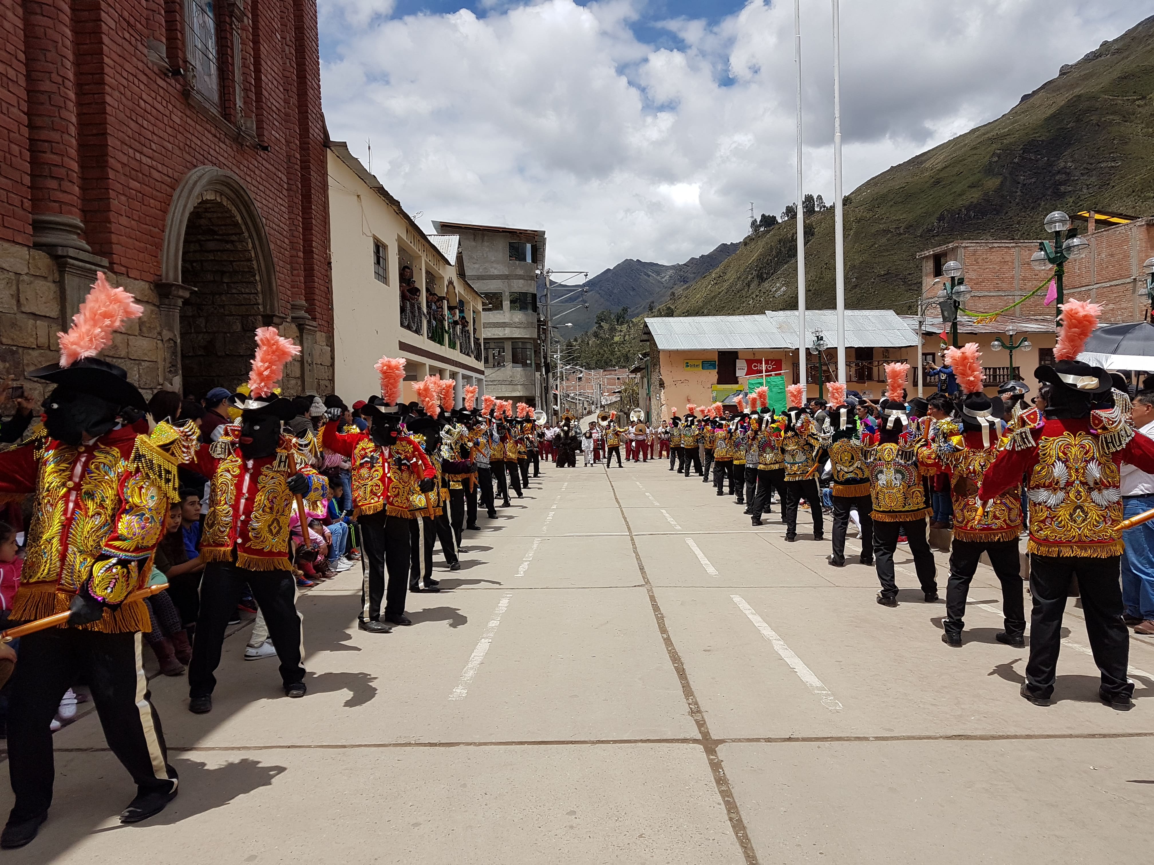 La composición de la cuadrilla: La cuadrilla está compuesta por dos columnas de 12 a 16 danzantes, haciendo un total de 32 integrantes. Además, están presentes el abanderado llevando el chicote, el Patirón o patrón, la Mallica que es la pareja del patrón luciendo un vestido elegante, más el oso que representa a la mascota.