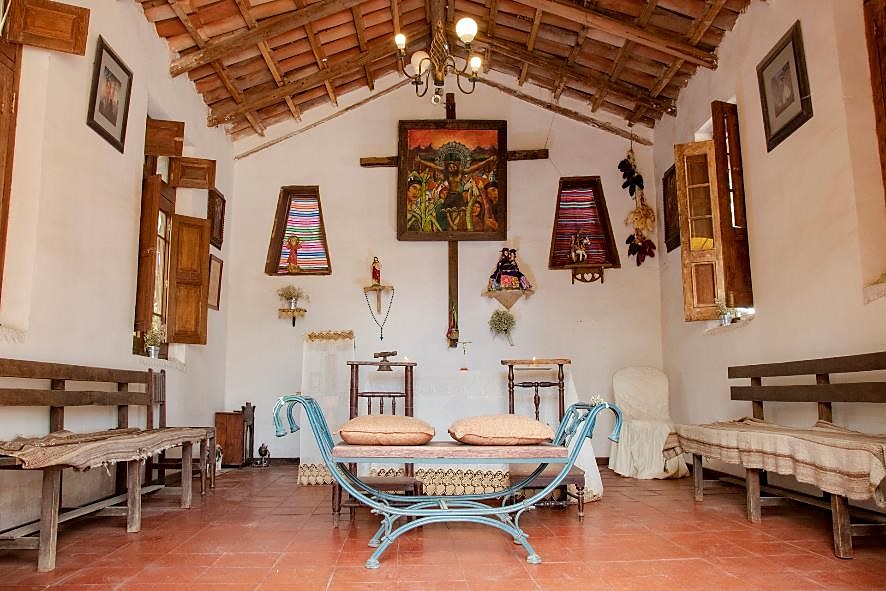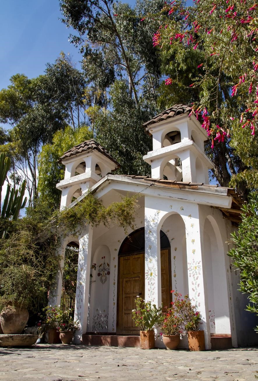 En los patios se muestra una colección viva de especies nativas del Valle del Mantaro y otras traídas en la colonia, entre ellas se puede mencionar el molle, quishuar, tanquish, cantutas en diferentes colores, ayrampo, plantas medicinales y aromáticas, entre otras; además de una capilla de típico estilo andino que en su interior muestra antiguos ornamentos religiosos.