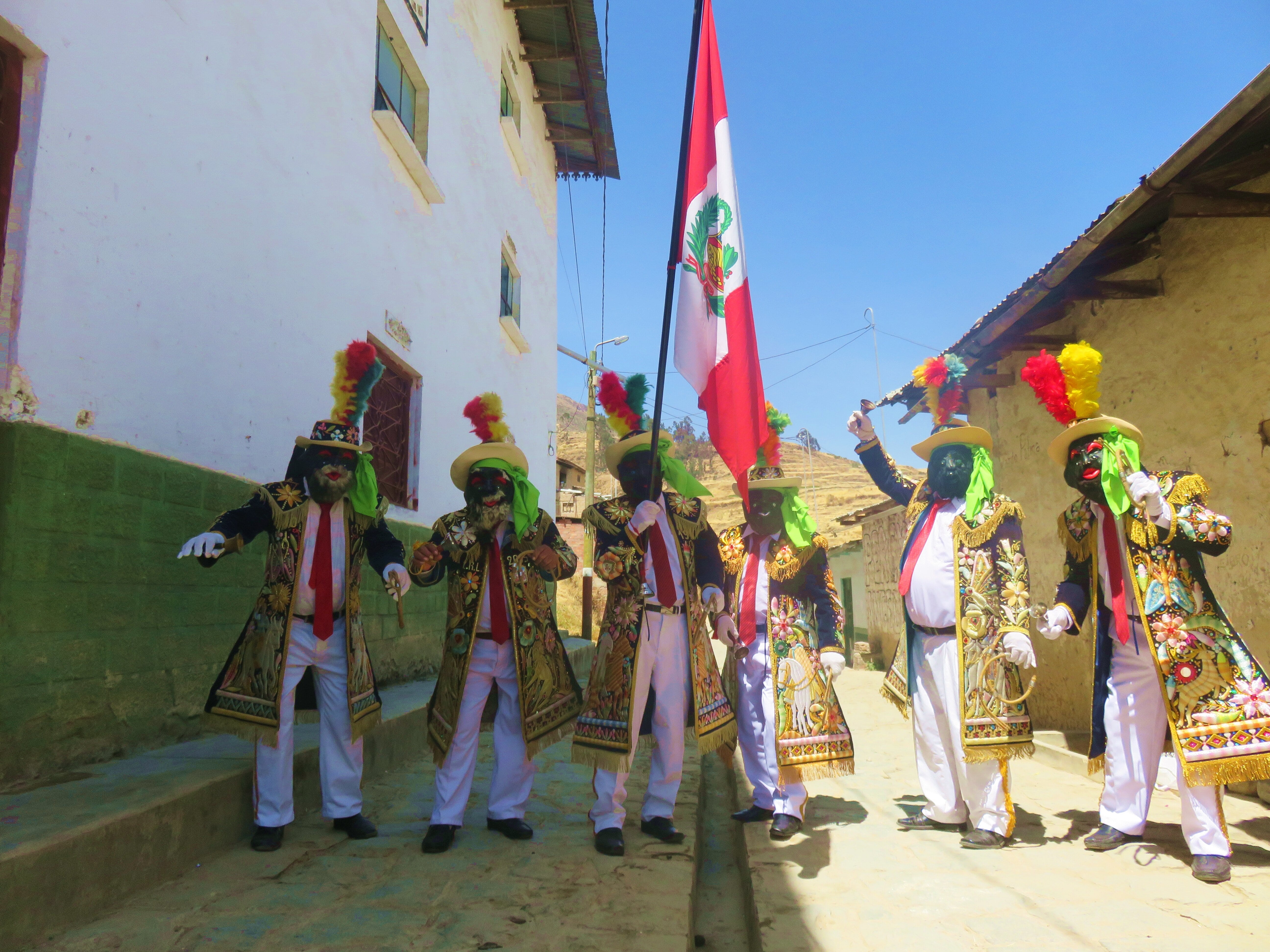 En horas de la tarde los negritos se desplazan en columnas acompañados de la banda conformado por trompetas, tarola, bombo, platillos, trombones, clarinetes y saxofón a la plaza Francisco Inka, realizan sus galantes pasos el cruce de chicotillos, saltos con las manos levantadas, llevando su pañuelo en la mano también se da el guapeo y posteriormente la entrega de ofrendas como donaciones.