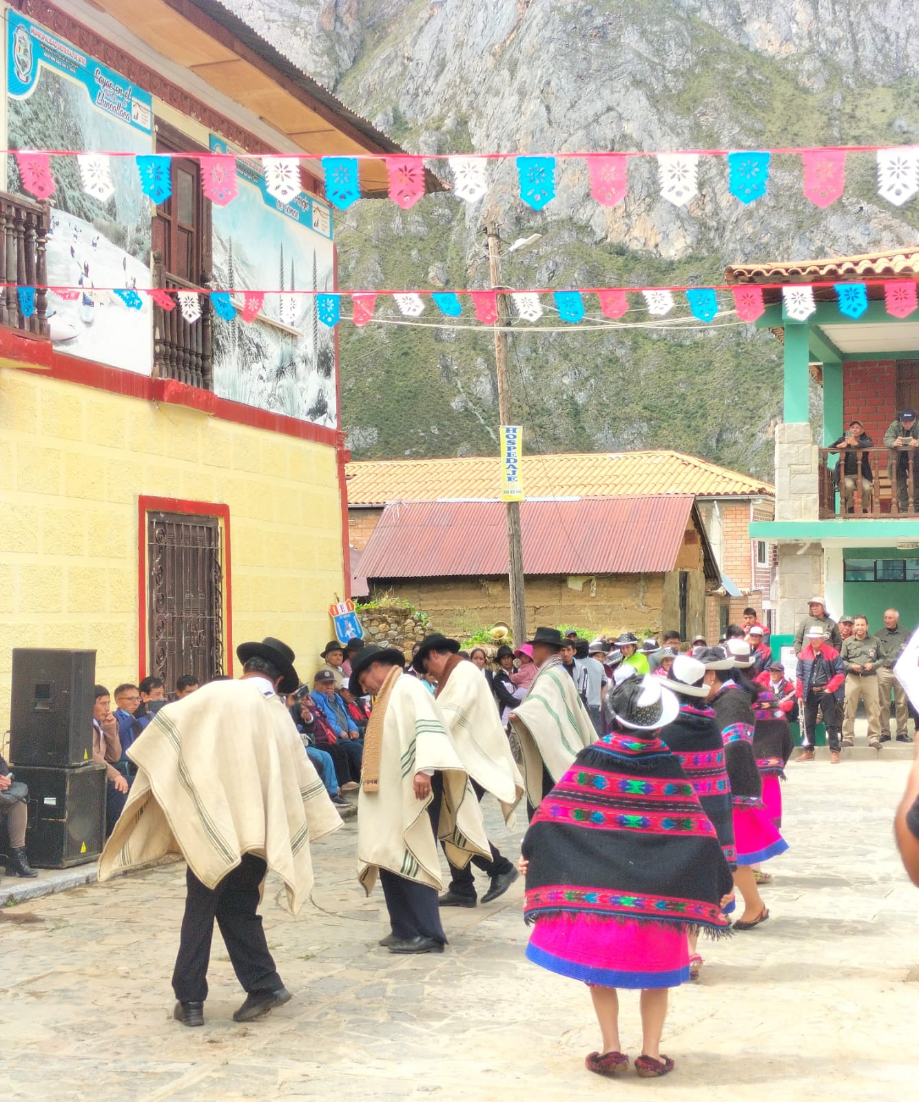 Por acepción lingüística, la expresión “Coronguina” proviene de una fusión de palabras “coro y guitarra”. Tal aseveración data a inicios de la época colonial, cuando jóvenes Huancayanos solían interpretar en coro la melodiosa coronguina y bailar al compás de los acordes de sonoras guitarras. En consecuencia, significa “canto en coro bajo los acordes de la guitarra”.La interpretación musical de esta danza se refiere al enamoramiento o cortejo de las parejas, cuyo evento romántico es ejecutado en canto y baile. La coronguina mimetiza y acentúa la identidad del poblador Huancayano reflejada en su origen e indumentari. Para su acompañamiento utilizan el instrumento musical de la guitarra (importado por los españoles).Es así, que su historia se remonta a inicios de la época colonial, en donde los famosos “Shallqas” (Habitantes de las partes altas de Huancaya, tales como Antarón, Paccha, Chucupata y demás aledaños) arribaban al poblado de Huancaya cada 23 de junio para promover como parte de la víspera a la fiesta patronal de San Juan bautista, el baile de la Coronguina. Así mismo, por las noches, las parejas jóvenes en secreto concurrían a las caídas de agua, en las zonas de Chipirique y Tapa, rincón, en donde el varón protectoramente peinaba el cabello de su amada “Humapakay” y la guitarra en mano componía el tono que les inspiraba.Sus composiciones son inspiradas en sus vivencias y costumbres, los mismos que se referían a sus parajes como Lecleshpata, proviniendo de allí su baile principal del “Léclesh”, expresión que también se refiere al ave que habita en las punas llamado Leqlesh, guardando similitud en su cortejo. De la misma forma se manifiesta el canto y música de, mi toro mocho, la Huancayana, Ay lindero, déjame pasar lindero, Tapopunta, entre otros. Su canto es de un estilo muy peculiar, como también el baile que es un zapateo muy común.Su vestimenta consiste, en los varones el shucuy (Ojota de cuero sin procesar) con pasadores naturales blanco o negro de hilos torcidos de lana de oveja o alpaca, actualmente también calzan zapato de cuero color negro; pantalón de tela “condorcillo” (Tejido en telar con lana de oveja) de color negro, poncho de lana de oveja de color blanco o nogal, con listones de color verde o azul. Usan también sombrero de color negro.La vestimenta que utilizan las mujeres está compuesta por el “shucuy” (labrado y matizado) con hilo trenzado de colores; justán de bayeta (tela tejida en telar de lana de oveja) de color rosado con líneas negras. Blusa de color blanco en tela de algodón, en la espalda una manta labrada de lana de alpaca con diseño de identidad local, sombrero redondo de lana de oveja color negro o de paja color blanco.La danza La Coronguina de Huancaya presenta interés turístico debido a que se conserva la originalidad y forma tradicional de su indumentaria típica, coreografía representativa y composiciones músicales, lo cual lo convierte en un patrimonio inmaterial enriquecedor de identidad para la actual y futuras generaciones. Los turistas pueden apreciar esta danza, que representa la historia de Huancaya a lo largo de los años, lo cual fortalece la parte cultural.