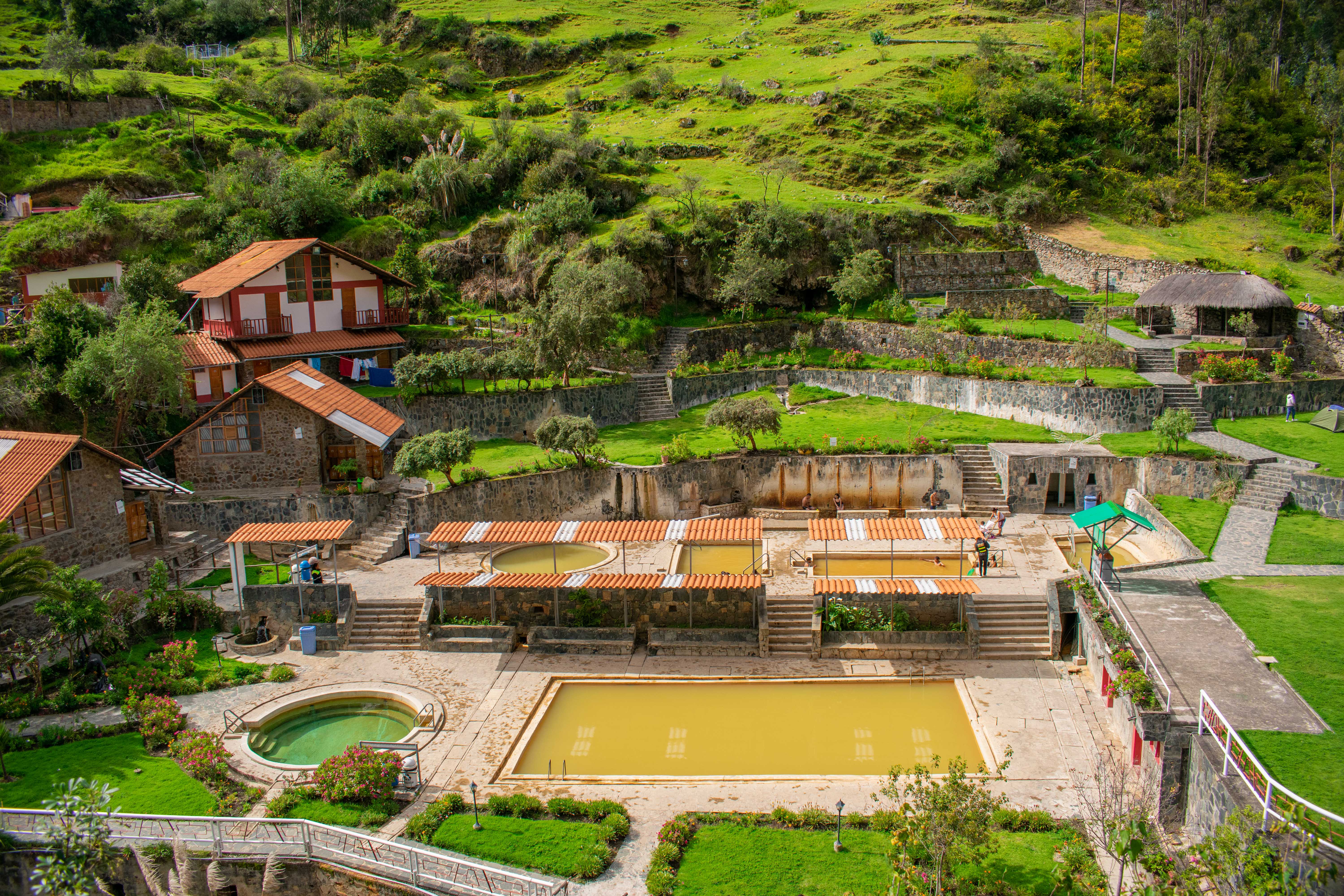 Además de las pozas, existe una batería de chorros de agua tibia, vestuario para damas, caballeros y personas con habilidades diferentes, servicios higiénicos, áreas verdes, zonas de camping, zona de estalactitas, miradores, hospedaje y playa de estacionamiento.
