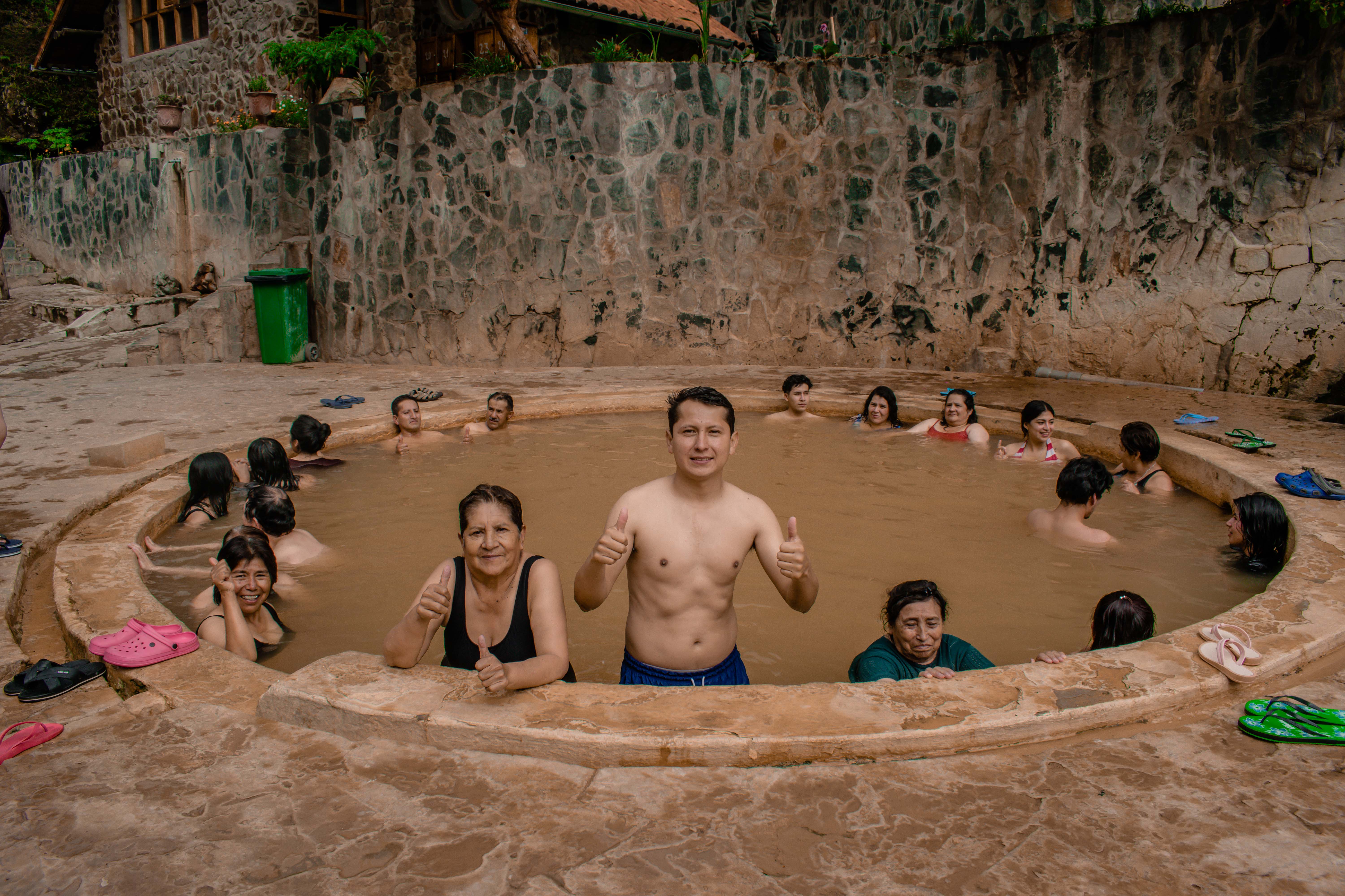 Los baños termales se encuentran ubicados en el distrito de Lares, a 3250 m.s.n.m, localizándose en la región natural Quechua. Cuenta con 06 pozas de diferentes temperaturas, tamaños, diseños y profundidades, aquí el agua tiene un color amarillento y se distribuyen adecuadamente por las canaletas, fluctuando así temperaturas desde los 35º hasta los 48º C. Su composición química según un estudio está basada en: Turbidez NTU:28.60, PH:6.35, C.E.us/cm:4110.00, Dureza ppm CaCo31788.00, Dureza cálcica ppm CaCo3:666.00, Dureza magnésica ppm CaCo3 : 287.50, Sodio ppm 897.60, Potasio ppm:114.00, Cloruros ppm: 1236.00, Sulfatos ppm : 966.20, Bicarbonatos ppm: 172.60, CO2 PPM: 12.40, Hierro ppm: 10.70, Boro ppm: 0.56, Aluminio ppm: 0.86, Magnesio ppm: 0.17, Cobre ppm: 0.22, Zinc ppm: 5.36, Silicio ppm: 42.20.