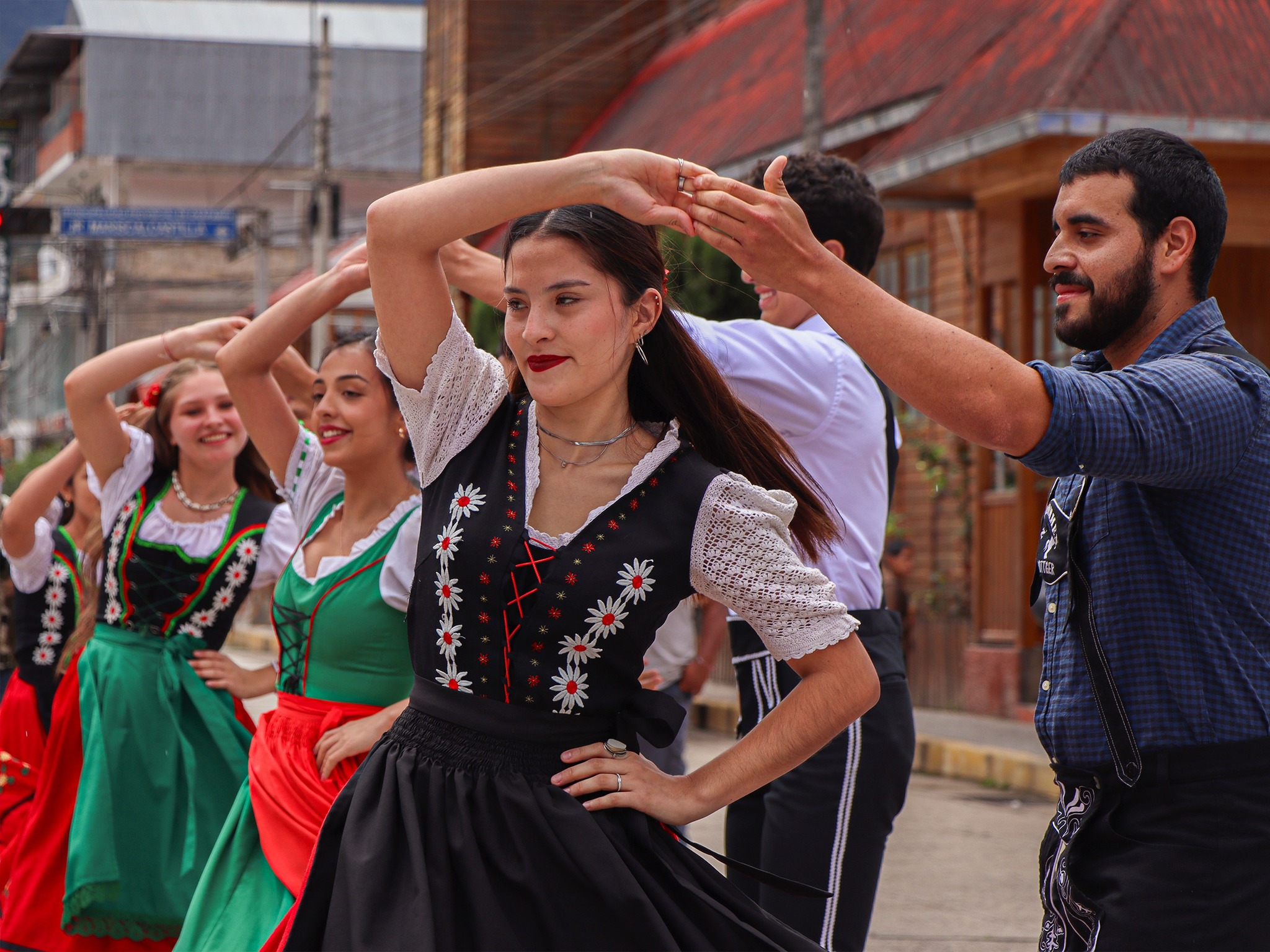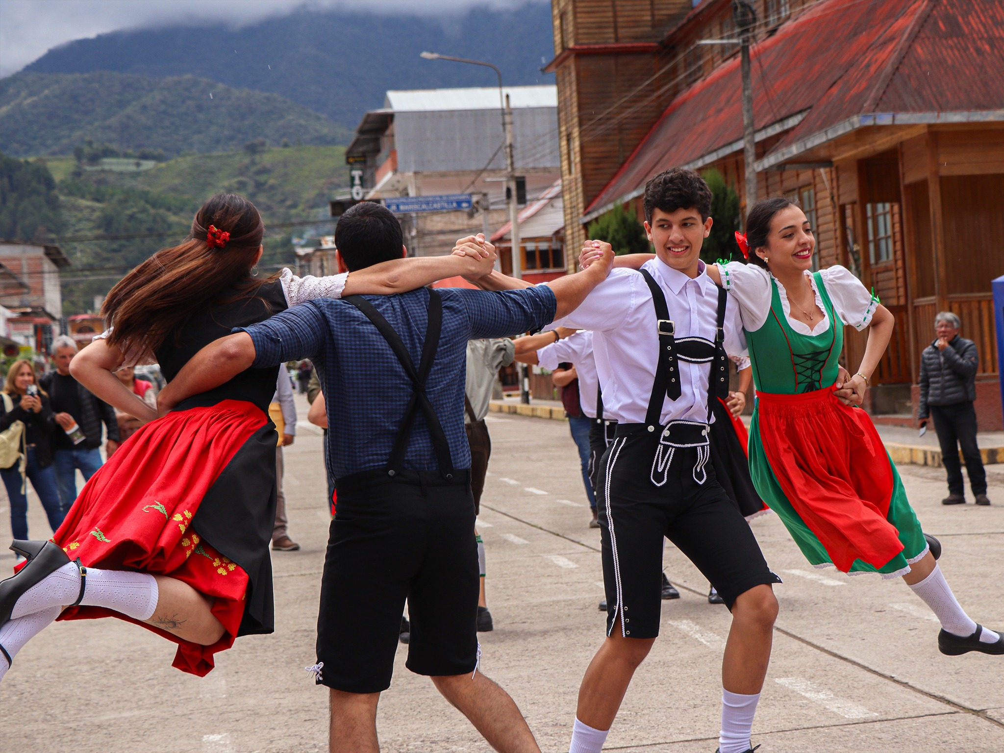 La Danza Tirolés es una exquisita variación del vals, con compases distintivos, pasos y figuras que encantan a quienes la presencian. Aunque esta es la danza más emblemática, los colonos también han conservado otras formas de expresión cultural a través de diferentes bailes tradicionales que han sido adaptados y mantenidos a lo largo de los años es una danza bailada en pareja, requiere destreza y costumbre, especialmente por parte del varón, que guía a la dama en los pasos y las vueltas al compás de la música. La autenticidad de la experiencia se completa con los trajes tradicionales: las damas visten el Dirndl, compuesto por blusas, delantales, corpiños y faldas largas, mientras que los caballeros lucen el Trachten. Estos elementos no solo embellecen la danza, sino que también conectan a los participantes con sus raíces culturales.