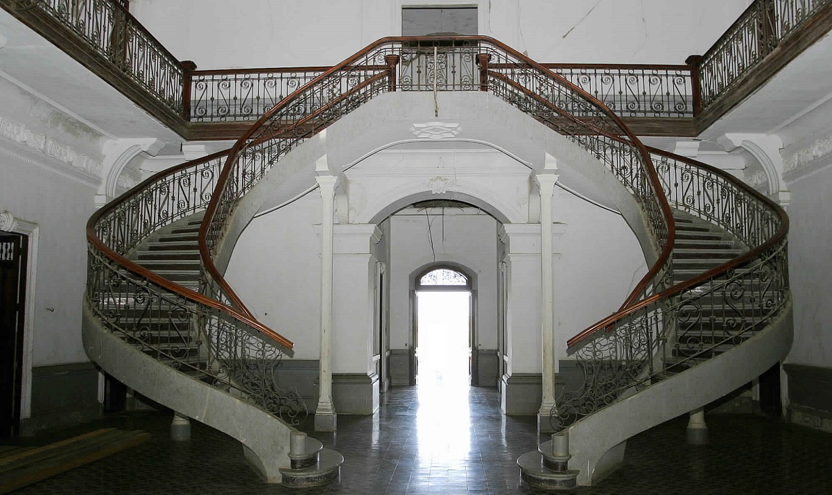 En el interior, sobresalen dos escaleras gemelas que, partiendo de puntos equidistantes, convergen elegantemente en el nivel superior, generando una atmósfera de grandiosidad. Las gradas, elaboradas en fino mármol de Carrara, refuerzan la estética europea predominante en la construcción. Aunque no se han registrado púlpitos ni altares, la casa presenta diversos detalles decorativos de alto valor patrimonial, como molduras artesanales, techos altos con vigas de madera a la vista, y pisos de baldosas hidráulicas traídas del extranjero.