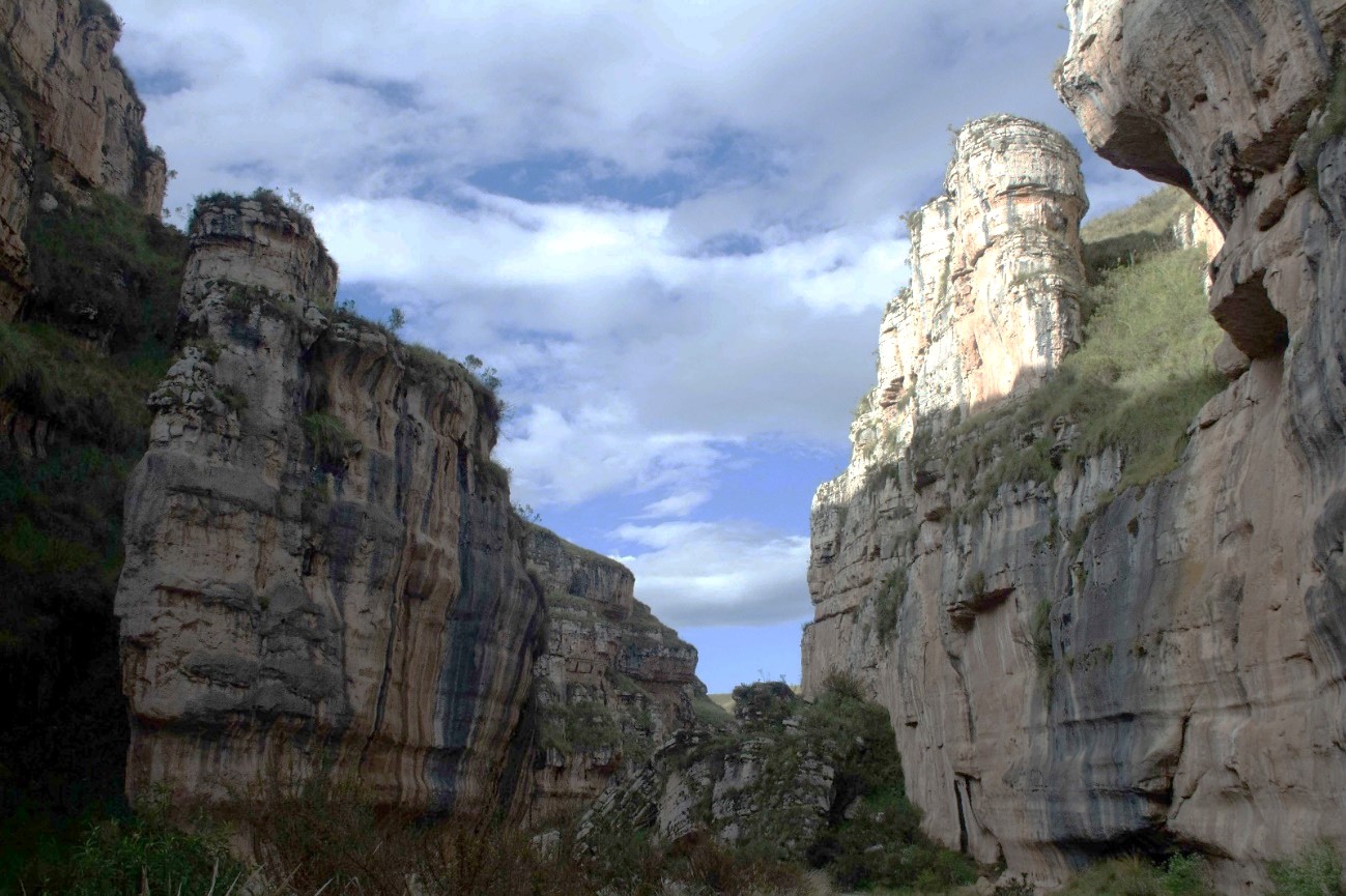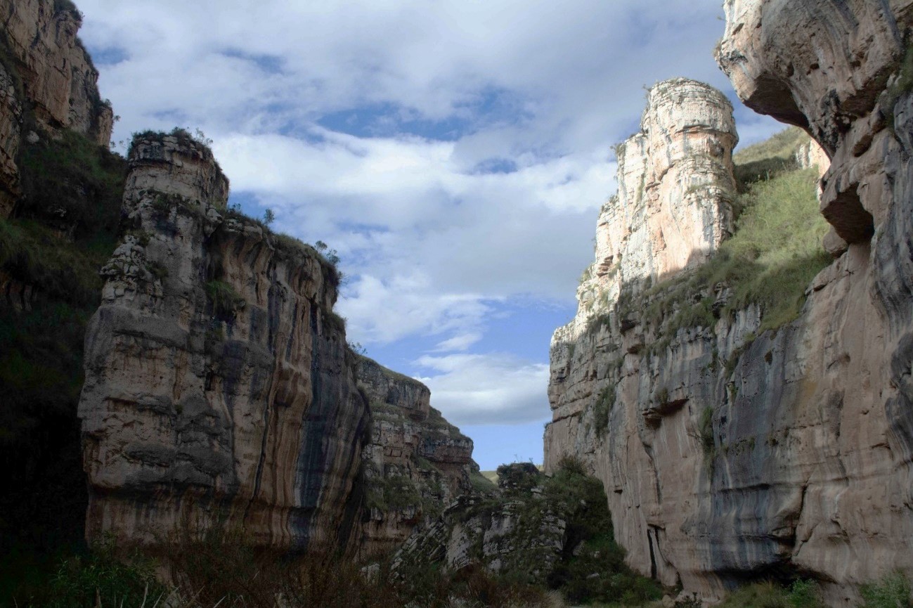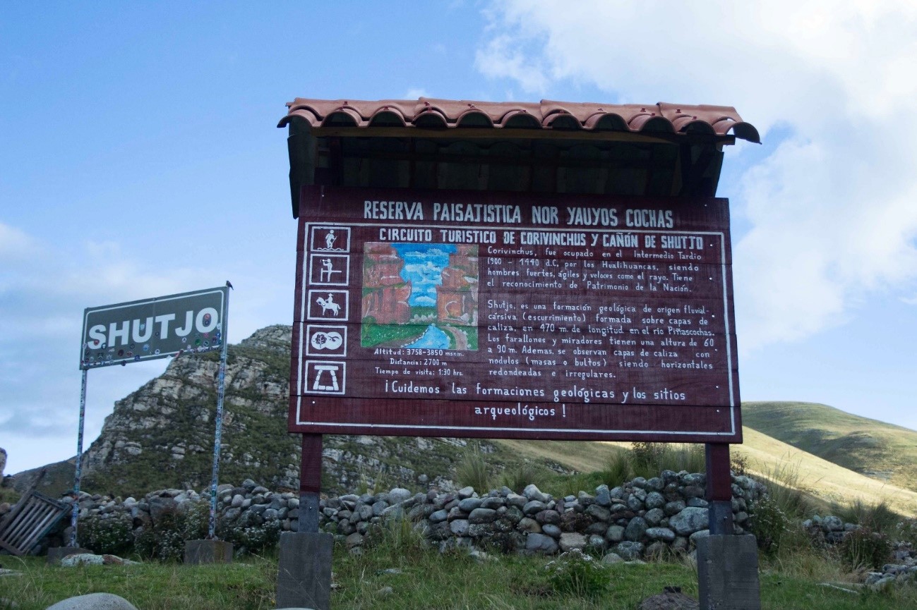 El Cañón de Shutjo, resulta ser un accidente geográfico que se ha formado por el discurrir del río Piñascocha, presentando paredes escarpadas y cóncavas, con una profundidad de 35 a 50 metros, compuesto por formaciones sedimentarias carbonatadas del Cretácico, como las formaciones geológicas Pariatambo, Jumasha y Celendín, dichas formaciones tienen características y edades que abarcan desde el Albiano medio hasta el Santoniano (108 a 83 millones de años), la formación Pariatambo, de unos 80 metros de grosor, contiene fósiles de Oxytropidoceras, la formación Jumasha, la más prominente del cañón, tiene hasta 300 metros de grosor y está formada por calizas grises y margosas, la formación Celendín, que alcanza los 400 metros, se divide en dos miembros: uno inferior, con yeso y calizas, y otro superior, con piedra caliza arcillosa y caliza laminada, que forman un laberinto de colores y texturas, que van desde tonos cálidos de marrones hasta los grises y ocres, creando un paisaje singular que refleja los efectos de la erosión diferencial, lo que enriquece aún más su valor paleontológico de este lugar, convirtiéndolo en un atractivo visual y científico, narrando la historia geológica del lugar, por su valor geomorfológico y paisajístico, siendo un sitio ideal para los amantes de la aventura dentro de la Reserva Paisajística Nor Yauyos Cochas, cercano al pueblo de Canchayllo, que mantiene su cultura viva y promete a los visitantes una experiencia única en un paisaje esculpido por el tiempo y la erosión.