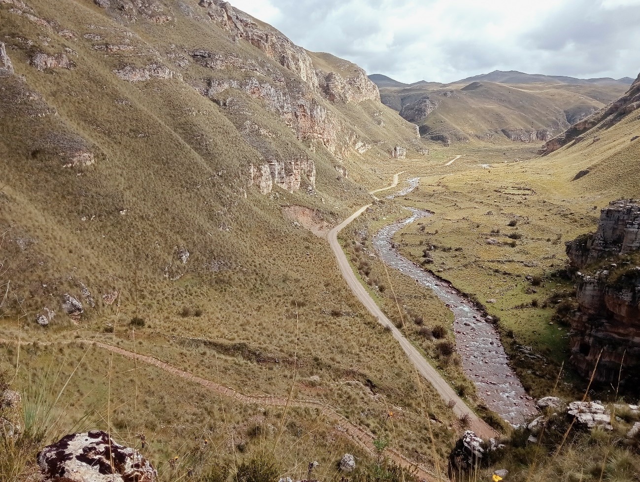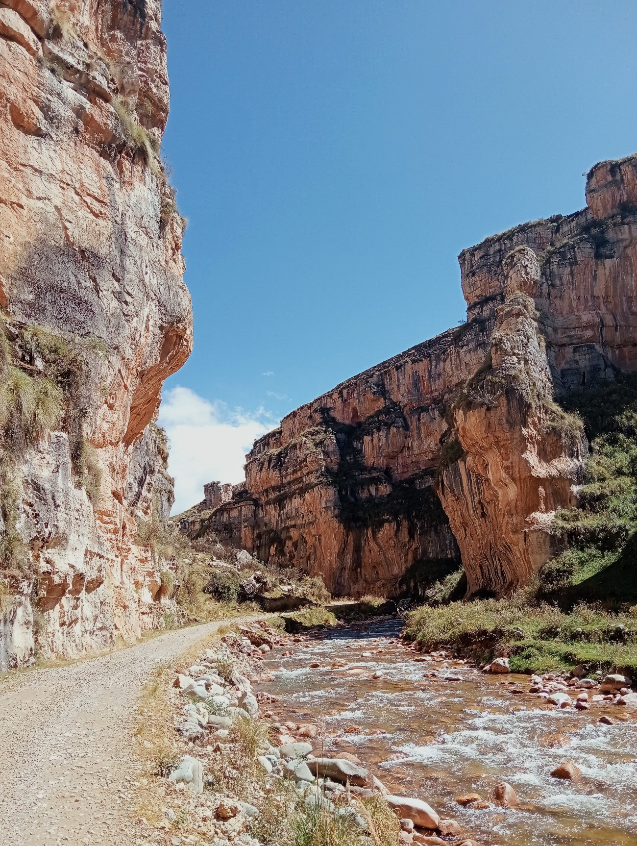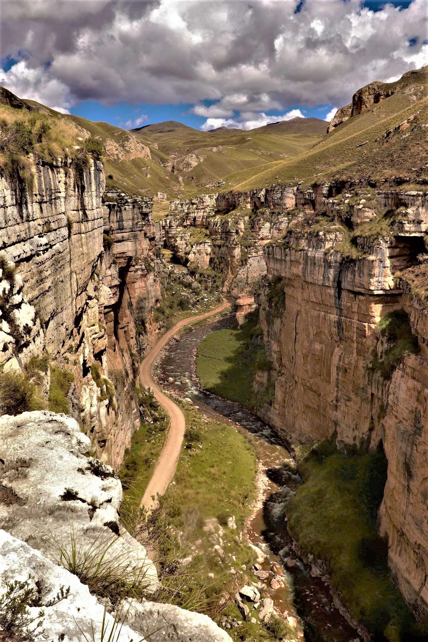 Al atravesar el cañón, yendo por una carretera afirmada que discurre por el margen derecho del río Piñascocha (sus aguas provienen de la laguna Lichicocha), en cuyo cause se observa depósitos rocosos, que añade dinamismo a la estructura natural, siguiendo el camino y más adelante, hacia el lado izquierdo se encuentra un singular sendero peatonal que conduce a una parte alta del cañón, desde donde se puede disfrutar vistas panorámicas del Valle de Piñascocha por un lado y del sitio arqueológico de Corivinchos por el otro, con aire fresco, impregnado del aroma de la vegetación, que invita a una conexión con la naturaleza y que al caer la tarde, la luz del sol tiñe el paisaje de tonos dorados y anaranjados, creando una atmósfera que atrae a quienes desean capturar este momento, un espectáculo natural que convierte al Cañón de Shutjo, en una experiencia para conectarse con la naturaleza y las historias impresas en la formación geológica a lo largo de millones de años.
