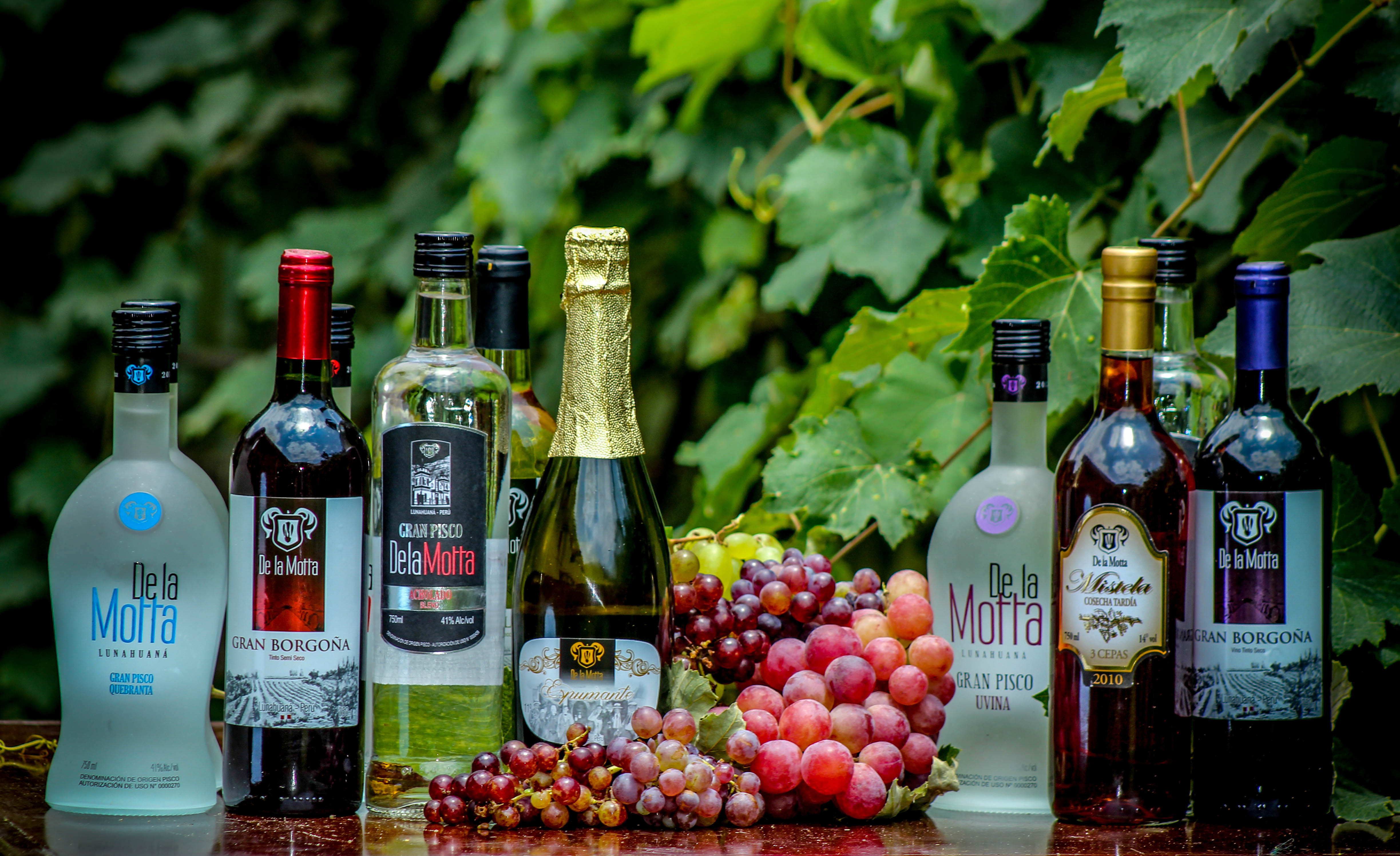 El Gran piscos la Motta, tenemos en las siguientes variedades Puro: Uvina y Quebranta. Los aromáticos Italia y Acholado Blend mescla de quebranta, uvina y moscatel.