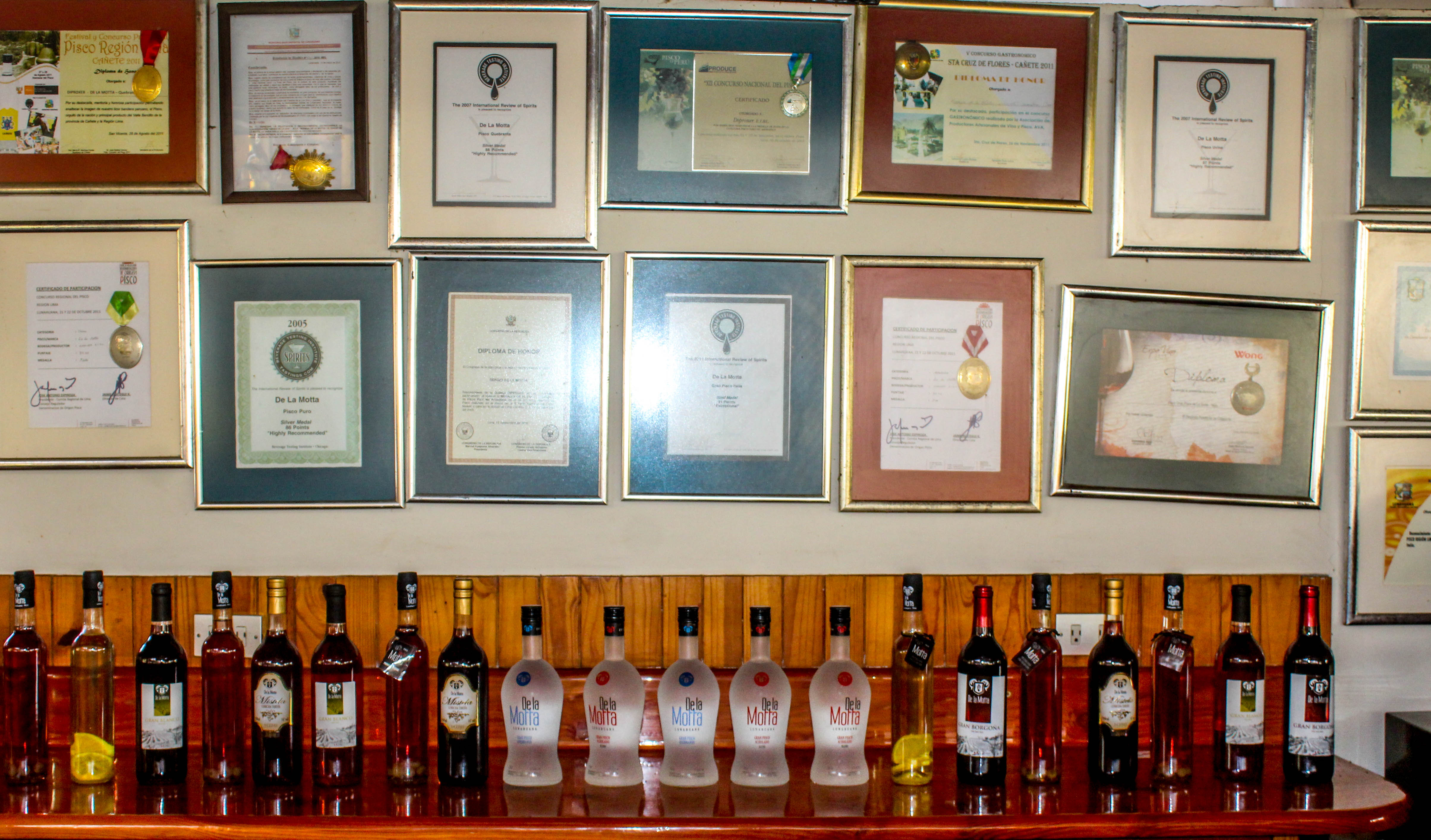 De La Motta, fue fundada en el año 2005 por Sergio Santiago de la Motta Córdova quien llego a lado de su esposa al valle de Lunahuaná donde se quedó impresionado de las imponentes tierra y clima, factor importante para emprender la elaboración de Vinos y Piscos, adquirido cuatro terrenos que en su totalidad comprendía 4 ha., dos situados en el anexo de Condoray donde iniciaría la bodega con un área de 1500 m². Y dos terrenos en el anexo de Catapalla para el cultivo de las uvas, dedicadas para la elaboración de Pisco, con el único objetivo de brindar un nuevo concepto en calidad, sabor, aroma, intensidad y presentación, logrando con ello elevar el nivel de identidad de nuestra bebida bandera considerando la exigencia del consumidor, como pieza fundamental para la elaboración de sus productos.En el año 2015 el señor Sergio de la Motta decide vender su anhelada bodega, ya que por motivos personales viajaría al extranjero, Doña Bertha Morales Lorenzo, empresaria, decide adquirir las propiedades de La Motta el cual ya era distinguida por su reconocida calidad en sus productos en eventos Nacionales e Internacionales y así continuar la segunda generación De la Motta. Actualmente, la bodega tiene una capacidad de producción de 50,000 litros, gracias a sus 02 alambiques de capacidad de 600 litros, cada una permite generar la alta producción en Piscos.Actualmente, La Motta presenta tres líneas de productos dentro de su portafolio: el Gran vino semiseco, Mistela, cosecha tardía y el Gran Pisco de la Motta.Entre los vinos semisecos destacan el gran blanco y gran borgoña negro.