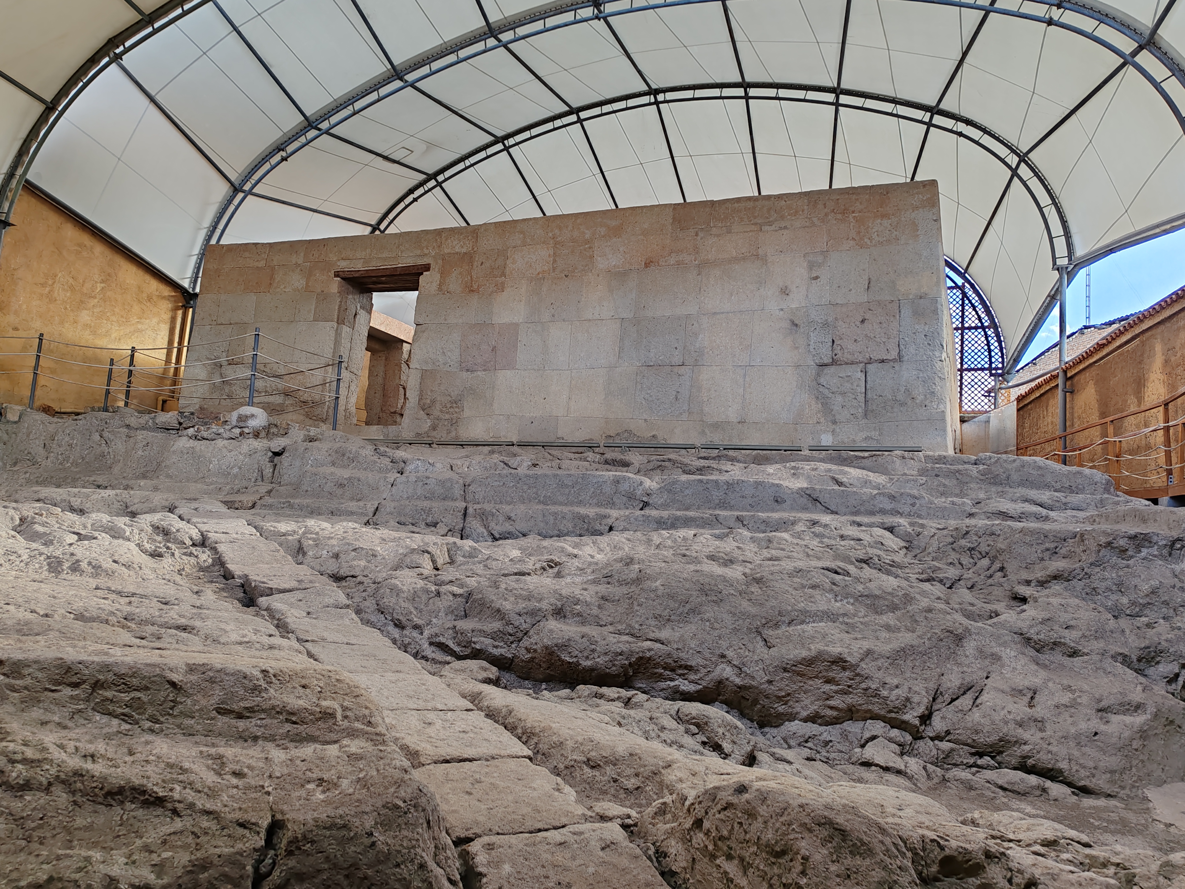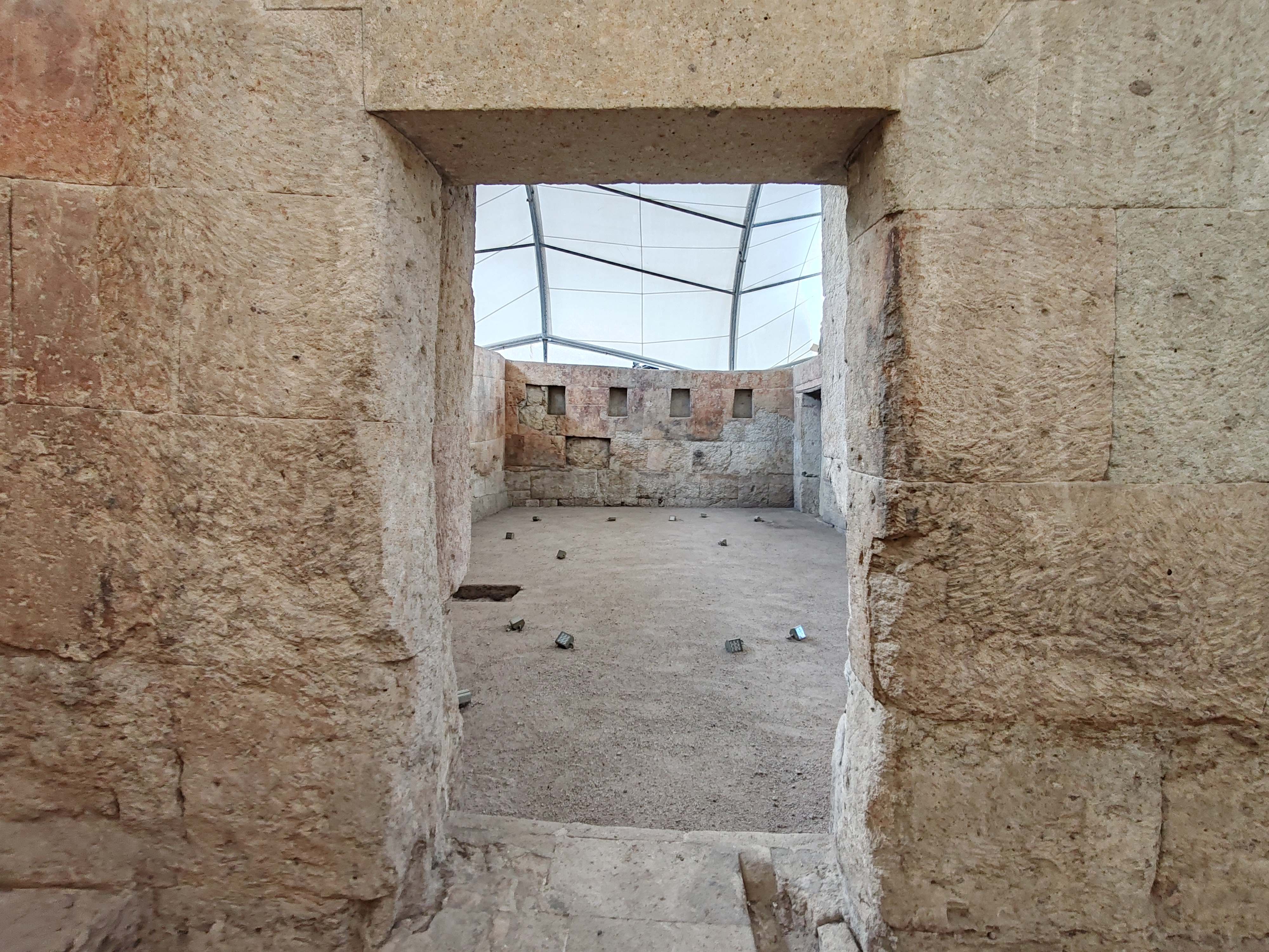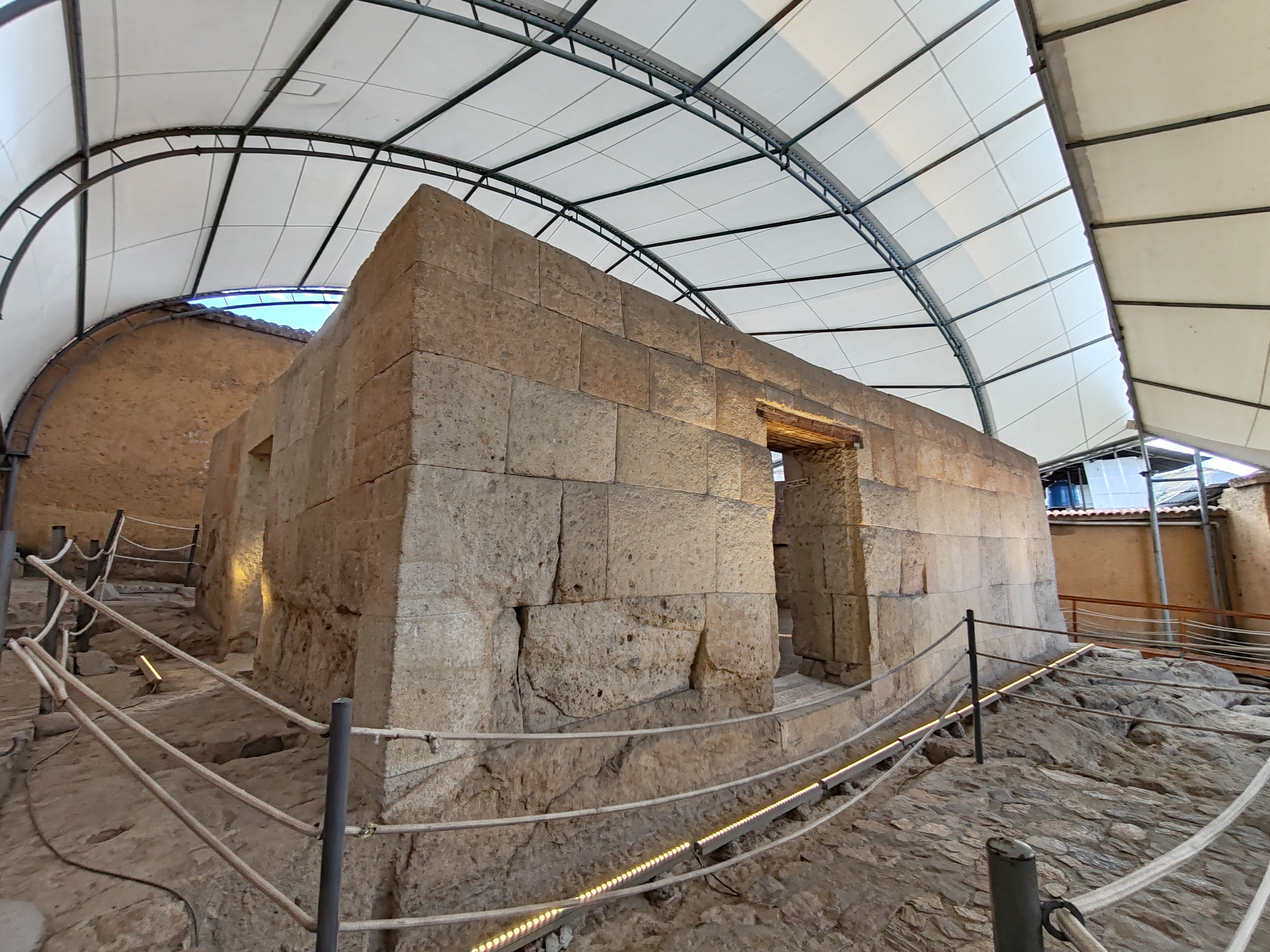 Es una obra típicamente inca, sus dimensiones son 11.80 m de largo, 7.30 m. de ancho y 3.1 de alto. Sus paredes o muros construidos de roca volcánica (cantería), se asienta directamente sobre la superficie de cantería sin cimientos; la estructura de sus paredes está constituidas por piedras poligonales de tamaños diversos, trabajados en todas sus caras, dispuestas en hiladas aparentemente regulares, aunque no enteramente rectas, que forman todo el ancho de las paredes. Actualmente las paredes presentan de 5 a 6 hileras de aprox. De 8 a 13 elementos en los paños mayores de 7 a 11 elementos en los menores. Los tres vanos frontales han sido adulteraciones tardías, el vano lateral izquierdo es original, en el interior destacan 10 hornacinas trapezoidales, 2 en la pared sur, 3 en el oeste, 4 en el norte y 1 en el este. el muro tiene una altura de 3.23 metros; siendo en sus esquinas externas del lado sur de 3.20 metros a la altura del vano central, ninguna de las esquinas externas presenta amarres a muros lo que parecería una estructura aislada. El techo es una construcción moderna.