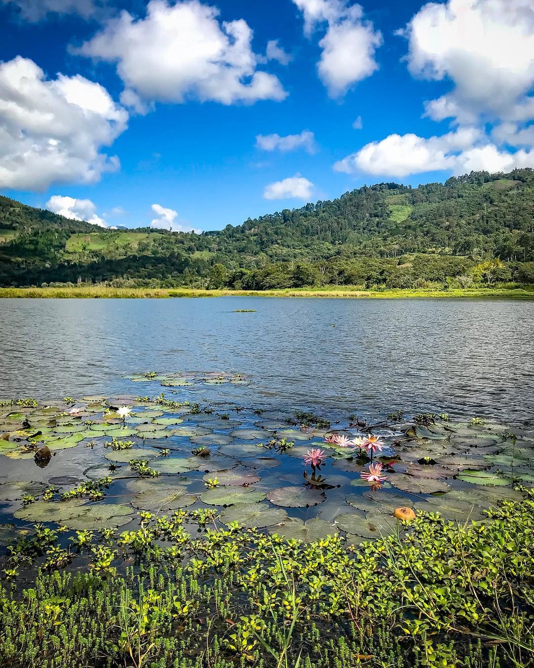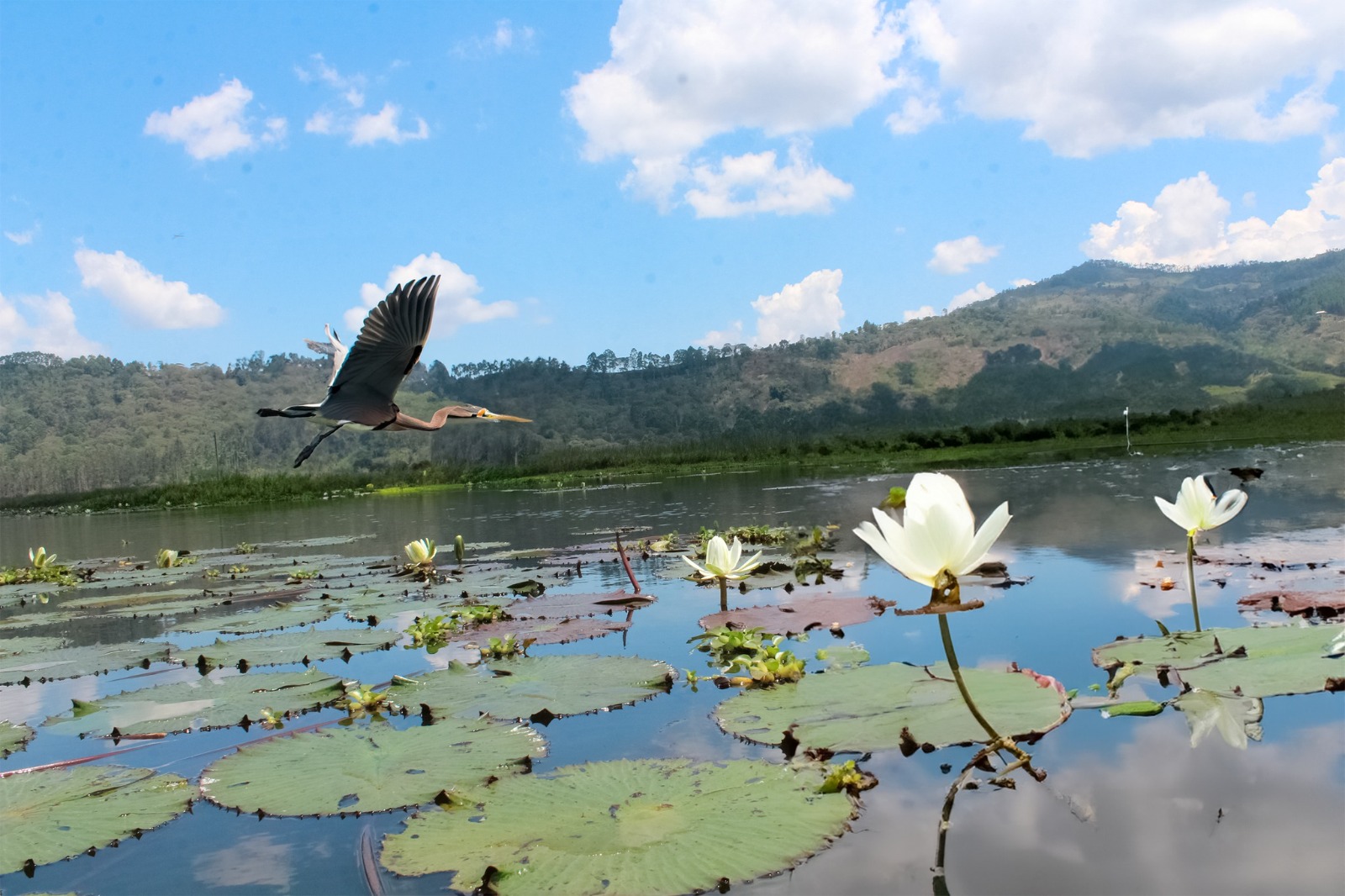Según el Centro de Estudios y Promoción del Desarrollo (DESCO, 2011), se han identificado 09 especies de mamíferos, 03 especies de anfibios, 68 especies de aves como: Pato Criollo, Pato Criollo, Pato Enmascarado, Chachalaca Jaspeada, Paloma Rojiza, Garcita Blanca, Martín Pescador Verde entre, también se encuentran varias especies de peces como: bagres, tilapias y peces ornamentales que han sido introducidas a este importante Área de Conservación, 62 especies de flora como la Flor de Loto, el Lirio Acuático, Jacinto de agua, helechos y pasto elefante, frutales como guayaba, pacae, cafetales y algunas especies maderables como: roble, nogal, cedro y eucalipto que han sido reforestadas al contorno de la laguna.