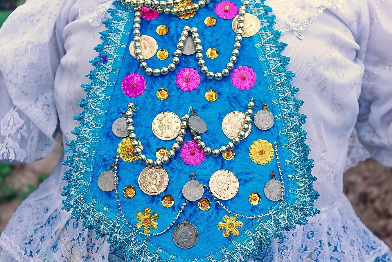 Esta danza se remonta a los años 1700, fecha en que Mamacha Cocharcas llego a la localidad de Cocharcas – Sapallanga, en medio de fiestas y danzas, siendo la Colla una de las más resaltantes junto a los Calachaquis y el Apu Inca. La Colla es una danza muy delicada, majestuosa y evocativa que se practica exclusivamente en el pueblo de Sapallanga, durante las festividades en honor a Mamacha Cocharcas, que se desarrolla del 07 al 12 de setiembre; es ejecutada por damas de edad, por lo que la Colla equivale a una danza en homenaje a la reina. La comparsa la constituyen una o dos parejas de mujeres, es decir no pueden participar ni jovencitas, ni niñas, ellas están resguardadas por 2 a 4 “llamichos”, quienes representan a los yanaconas del Imperio Inca; uno de ellos conduce una alpaca (camélido peruano), que carga plata, y el otro conduce una vicuña que carga oro, metales más preciosos de la tierra que serán ofrendados a la reina del cielo. La vestimenta de la colla es señorial, como corresponde a una reina. Contiene elementos andinos y occidentales. Consta de las siguientes prendas: tocado o cofia, equivalente a la montera indígena, viene a ser un rodete de telas finas en el que se insertan hermosísimas flores de matices, principalmente rosas, semejante a un nutrido ramo de flores que reposa sobre la cabeza; lucen monedas de plata o bien rosarios de perlas que hacen aún más hermoso el tocado, todo este aparato va sujetado por unas cintas que se usan por debajo de la quijada, detrás de éste, pende un manto fino, algo angosto o bien uno de puro encaje que representa al chuco cusqueño. La Sra. Eusebia Fano, sapallanguina y destacada intérprete de esta danza, afirma que el tocado tenía una base de madera, y cuanto más pesado, era mejor para expiar pecados ante la madre del universo; usan una blusa de finísimo encaje, de influencia europea; una falda larga de gran magnitud, finos guantes blancos y pañuelos de regular dimensión y de gran albura en número de dos, zapatos actuales bajos, zarcillos grandes en las orejas y collares de perlas sobre el pecho, de estas prendas consideramos autóctonos la cofia, el mantón, los zarcillos y los collares.