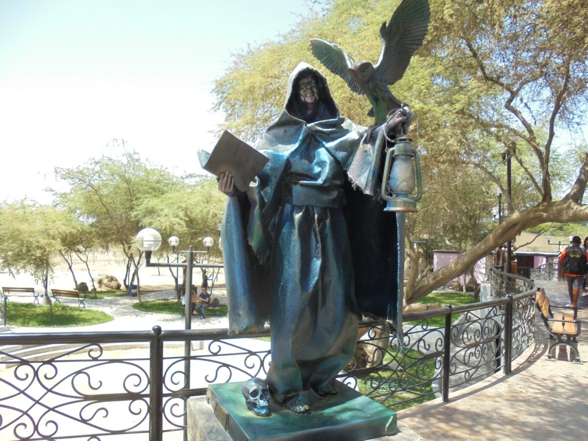 Don Francisco León de Vivero, a los 14-15 años, era un joven que hablaba de forma entrecortada, llegó a manos de la bruja quien lo curó y, además, le auguró que va a convertirse en un gran profesional. Al fallecer la bruja Julia Nazaria Hernández Pecho Viuda de Díaz, a los 101 años debido a un paro cardiaco, Don Fernando León de Vivero, mandó a construir un monumento en honor a la bruja que le devolvió el habla. Este monumento está compuesto por un búho que significa inteligencia, sabiduría, brujería blanca y una calavera que significa maldad, hechicería, brujería negra, sus brazos están en forma de “V” que significa victoria y veneración.