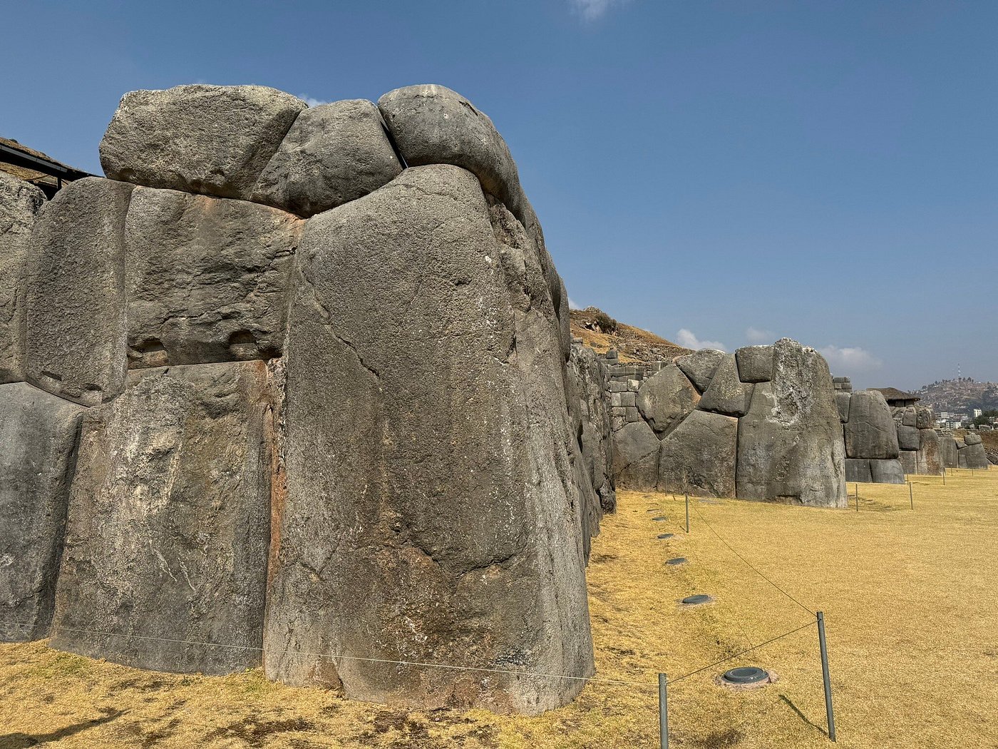 Saqsaywuamán contiene algunas de las piedras talladas y ensambladas más grandes de toda América prehispánica, incluyendo un bloque que mide más de 8.5 metros de alto y se estima que pesa más de 120 toneladas. El arqueólogo John H. Rowe, en sus estudios sobre arquitectura inca, documentó que Saqsaywuamán tiene los bloques de piedra más grandes encontrados en construcciones incas.