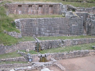 El sitio arqueológico de Tambomachay , al parecer, se trató del balneario favorito del inca, pero al mismo tiempo, fue uno de los pilares del sistema defensivo del valle del Cuzco. El nombre proviene de dos palabras quechuas: Tampu, que significa alojamiento colectivo, y Mach´ay, que significa lugar de descanso. Sin embargo, según otras referencias, la palabra "machay" significa "cavernas", lo que describiría el peculiar entorno del lugar en el que se aprecian estas formaciones rocosas naturales, lo que, conforme a la tradición indígena, fueron objeto de veneración o prácticas mágicas. Formado por un conjunto de estructuras de piedra finamente labradas, acueductos y caídas de agua provenientes de los manantiales y fuentes termales cercanas (por lo que se piensa que estuvo relacionado con el culto al agua), es uno de los pilares de la cosmovisión andina. Es considerado como uno de los adoratorios del primer ceque del Antisuyo. Según las crónicas, fue coto de caza de Inca Yupanqui, lo cual hace suponer que se trató de una zona muy rica en especies animales. El monumento es notable por su excelencia arquitectónica. Se observan cuatro muros o terrazas escalonadas adosadas al cerro, construidos sobre la base de poliedros irregulares de piedra labrada, magistralmente ensamblados, y que forman tres andenes paralelos. Sobre el último se erige un grueso muro (15 metros de longitud por 4 metros de altura) adornado con cuatro hornacinas. Las piedras han sido perfectamente encajadas. Presenta cuatro grandes nichos u hornacinas trapezoidales de dos, 2 metros en promedio. Frente a la construcción hubo un torreón circular que debió tener fines de defensa y comunicación. Este lugar se daba Culto al Agua, fue venerado como fuente de la vida. Tambomachay posee un extraordinario sistema hidráulico. Dos acueductos artísticamente tallados en la roca transportan y mantienen un flujo constante de agua limpia y clara durante todo el año, que viene de una poza que está a un nivel más alto. Esta red de canales subterráneos vierte sus aguas en una pequeña poza de piedra en el nivel más bajo. Esta poza tuvo que ser una fuente litúrgica, donde el inca rendía culto al agua con los grandes del Imperio. El "Baño de la Ñusta" tiene mucha similitud al de Ollantaytambo, de piedras perfectamente ensambladas, con reborde tallado y canaletas para el desagüe. Aunque hoy es una obra a cielo abierto, los cimientos parecen indicar que originalmente fue un recinto cerrado. Se ingresa a través de cuatro andenes de pórtico trapezoidales de doble jamba.