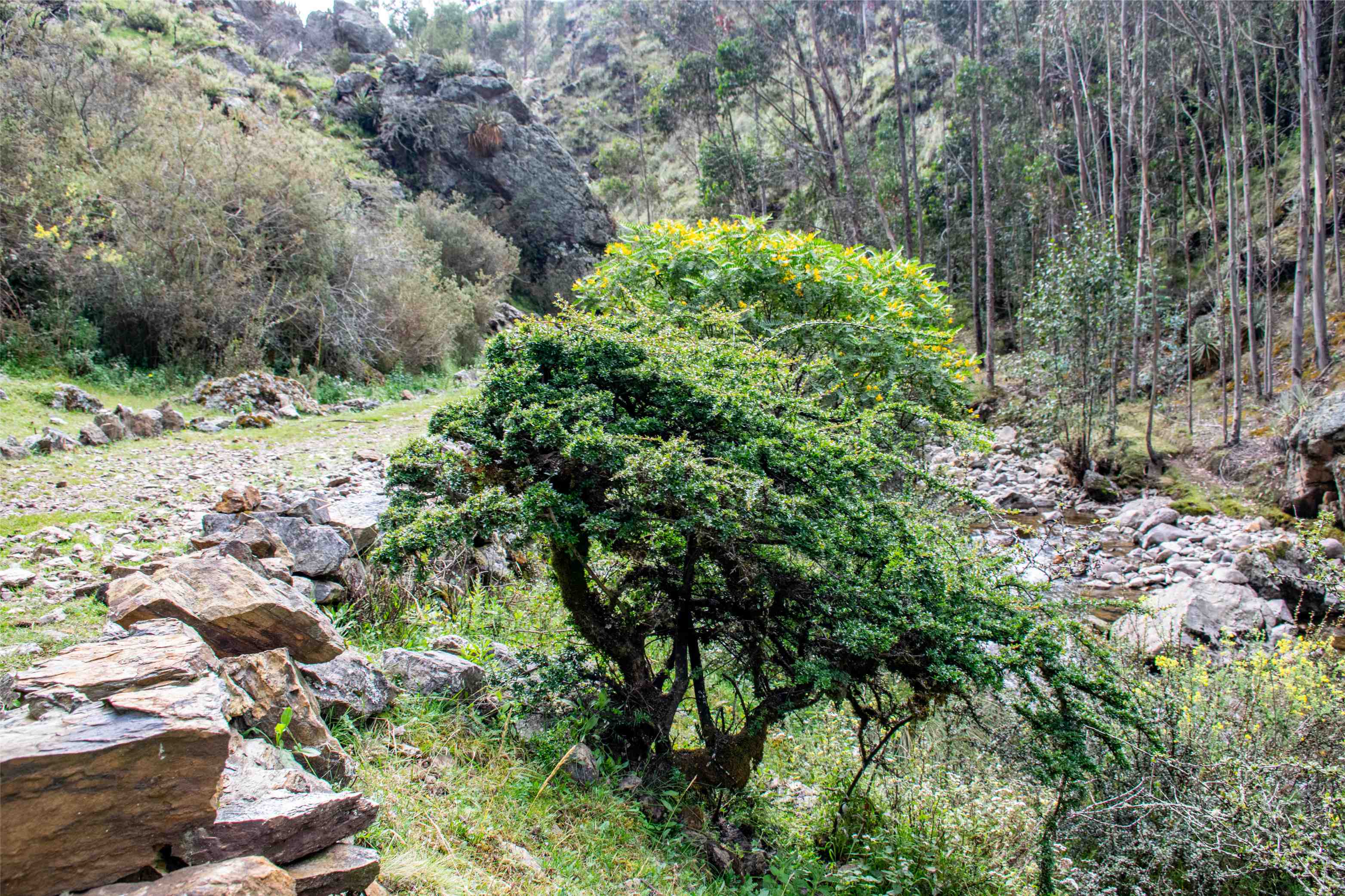 Flora como puyas de Raimondi, ortiga o ishanka, hualamacay o marmaquilla, chijchi y otros.